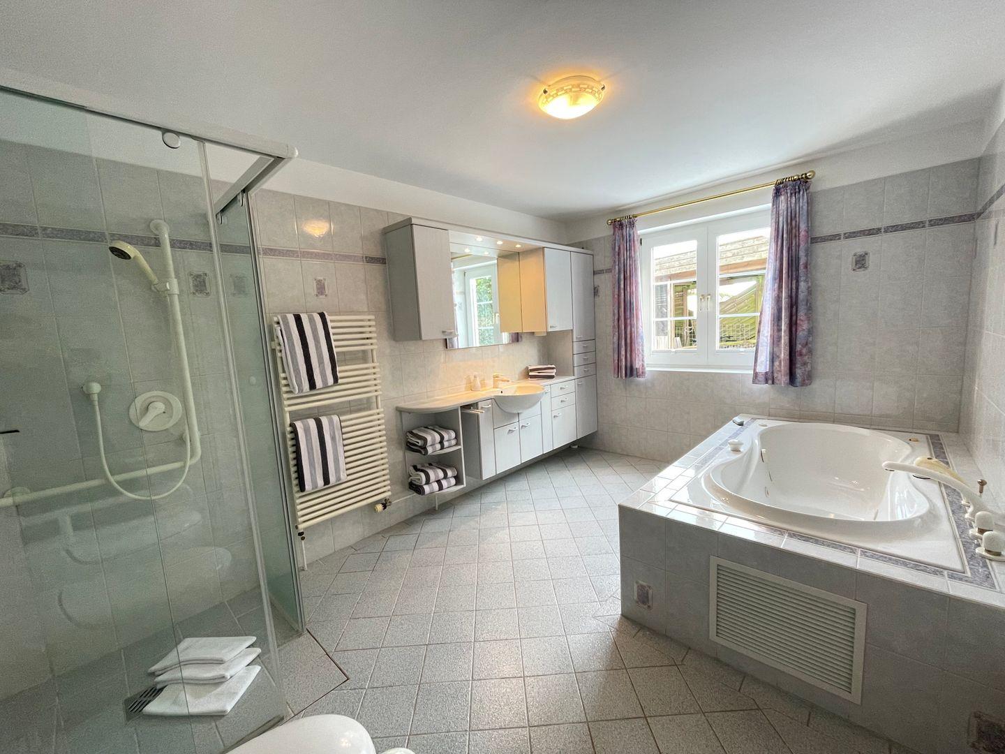 Badezimmer bietet Ihnen sowohl eine Dusche als auch eine Badewanne und ist nur