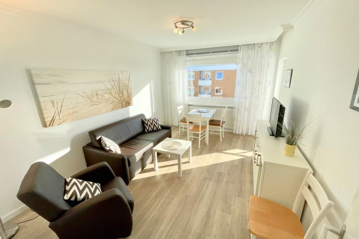 Die modern ausgestattete Unterkunft 20-A162 in Westerland bietet auf 35 m² ein separates Schlafzimmer, einen gemütlichen Wohnbereich, einen geschlossenen Küchenbereich mit Backofen, Balkon mit Gartenblick sowie WLAN. Einkaufsmöglichkeiten, Restaurants und der Strand befinden sich in fußläufiger Nähe. Ein Privatparkplatz steht zur Verfügung. Haustiere sind erlaubt.