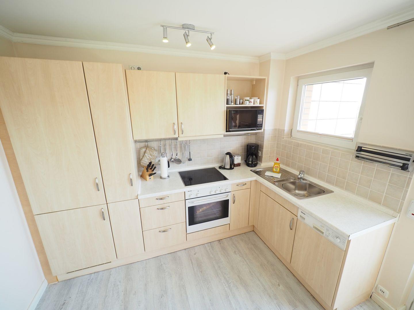Offene Küche: Voll ausgestattet mit E-Herd und Cerankochfeld, Mikrowelle, Geschirrspüler,