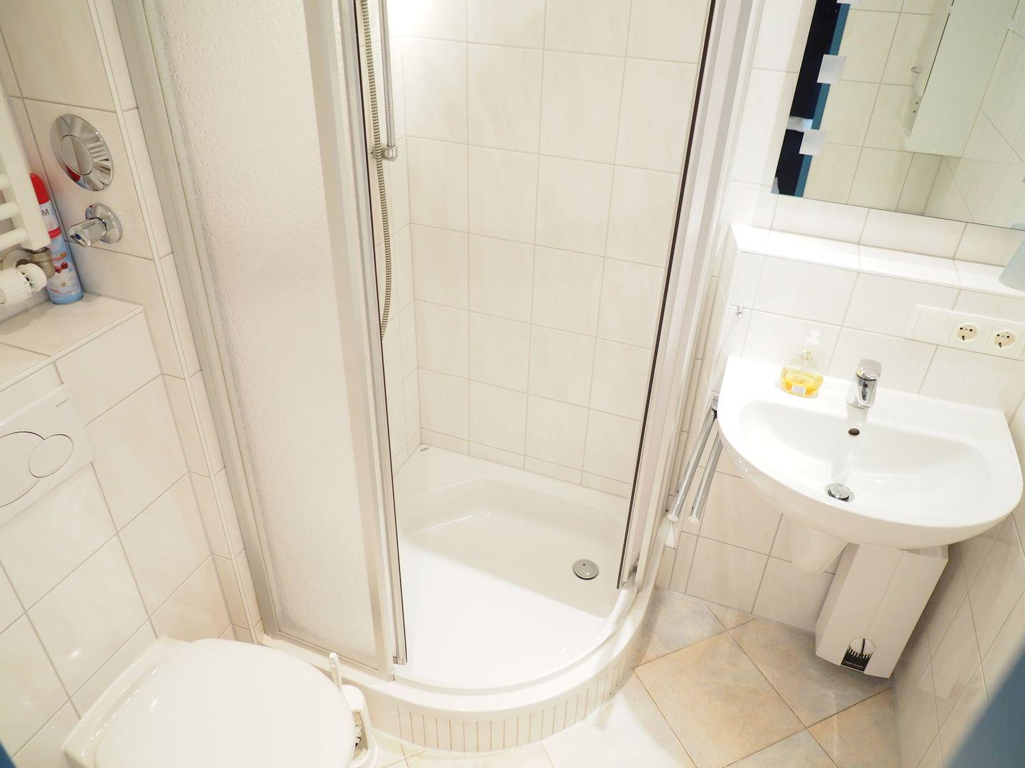 Schlafkomfort. Badezimmer: Ein modernes Duschbad mit WC sorgt für Ihr