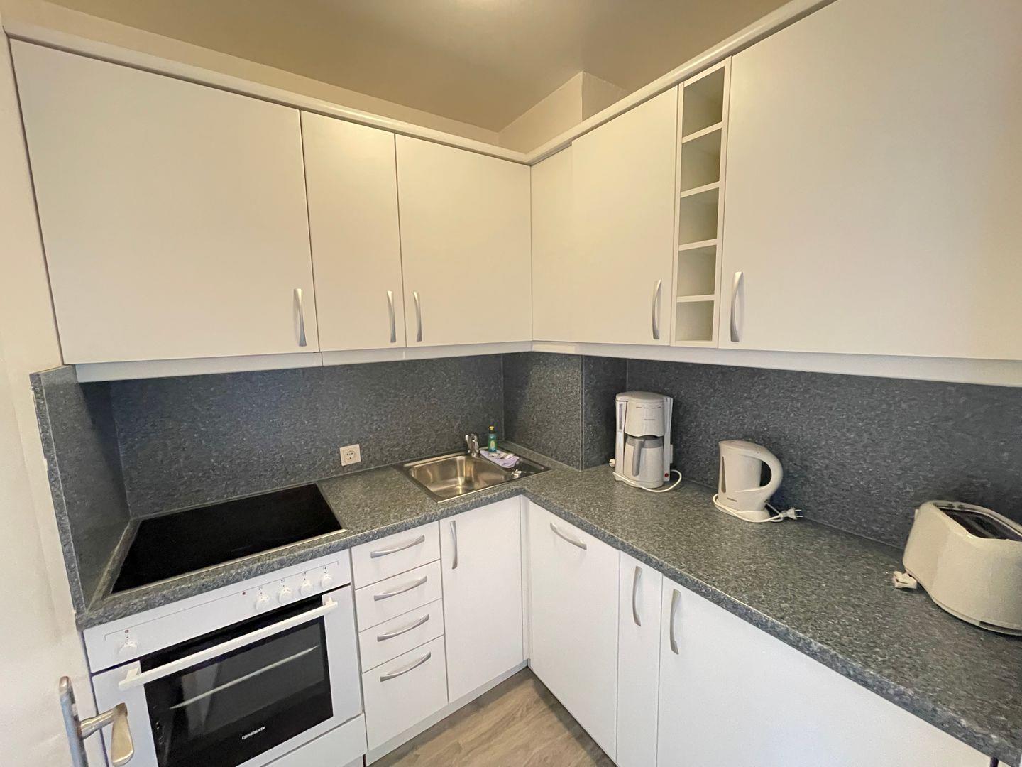 und Cerankochfeld, einem Geschirrspüler und einem Kühlschrank ausgestattet.