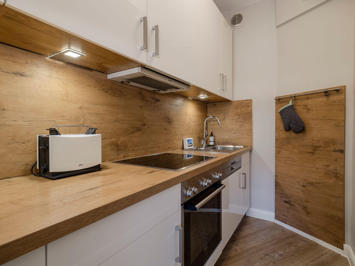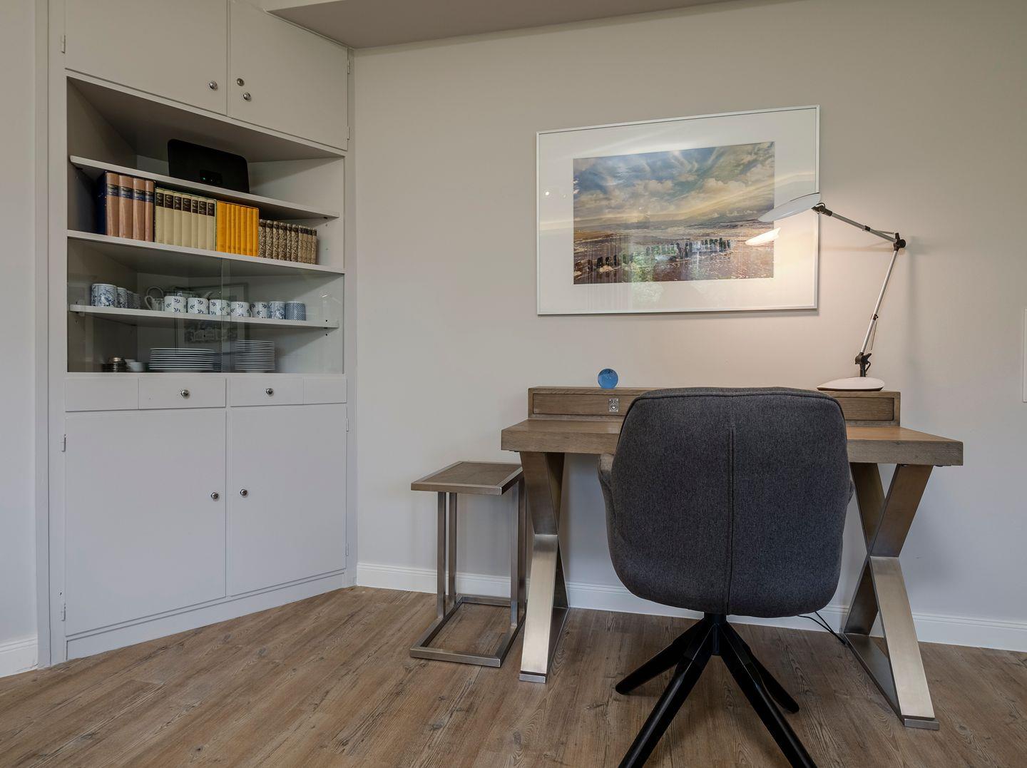 Wohn-/Koch-/Essbereich: Geräumiger Wohnraum mit einer gemütlichen Sofaecke, TV und hervorragend eingerichtetem Arbeitsplatzbereich, der auch das mobile Arbeiten im Urlaub ermöglicht. Der große Essbereich bietet Sitzplatz für sechs Personen und lädt zu geselligen Mahlzeiten ein. Von hier gelangen Sie in die gut ausgestattete Küche.