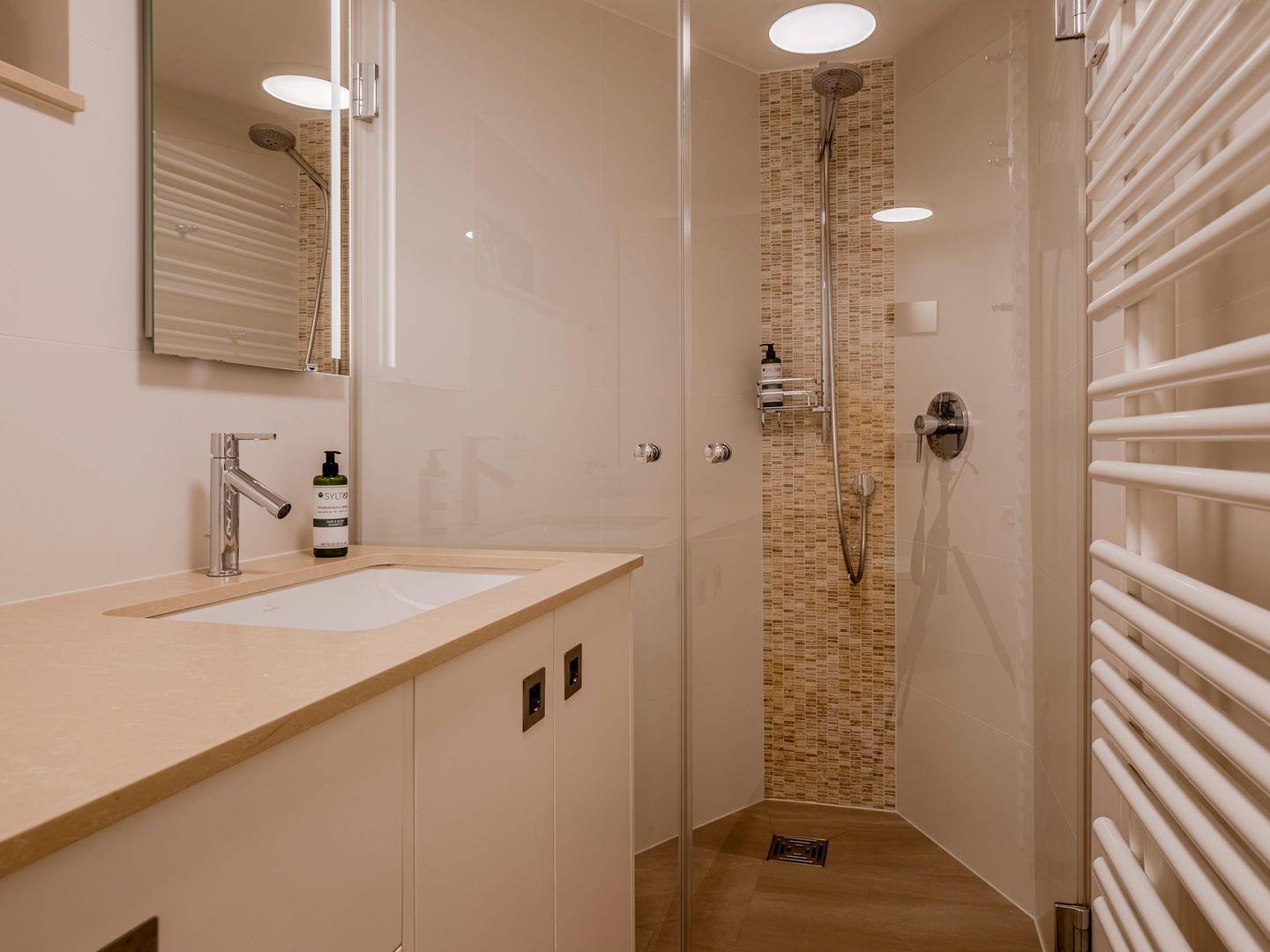 Von hier aus gelangen Sie in alle Zimmer der Wohnung, die im Jahr 2025 modernisiert und neu eingerichtet wurden. Die gesamte Wohnung besticht durch ein individuelles Beleuchtungskonzept und bietet viel Helligkeit.
