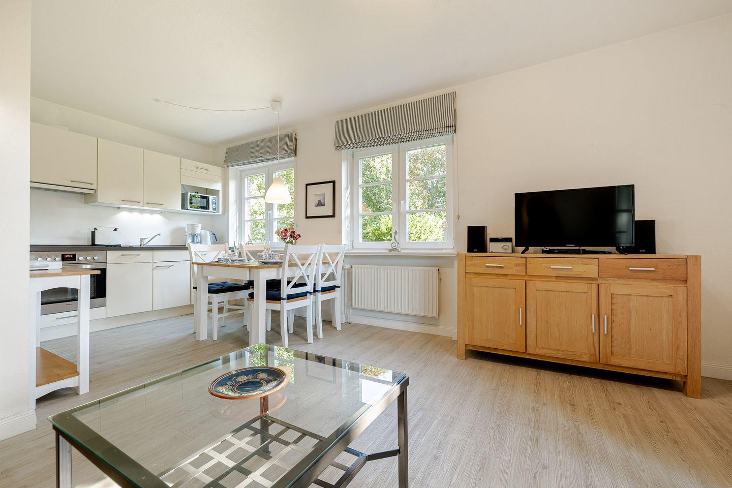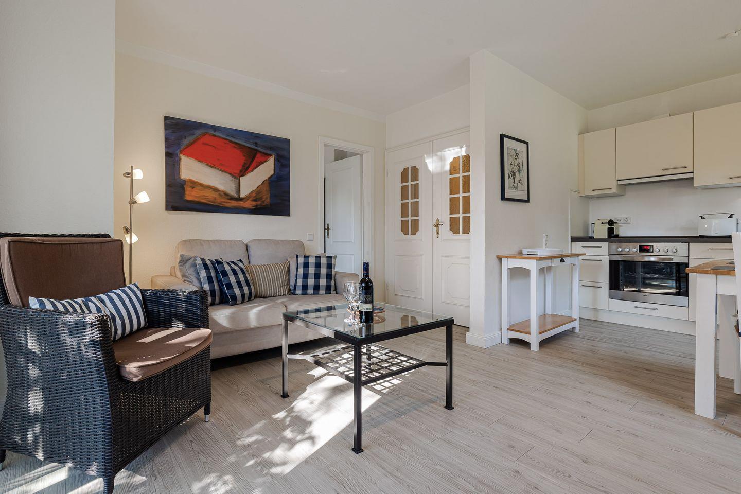 Auch die Lage verbindet Ruhe und Nähe auf angenehme Weise. Der weite Weststrand ist in wenigen Gehminuten erreichbar, ebenso die ruhigere Wattseite, kleine Waldwege und naturnahe Bereiche. Die Westerländer Innenstadt mit Cafés, Restaurants und Geschäften liegt ebenfalls gut erreichbar – ideal, um zwischen Rückzug und Inselleben zu wechseln.