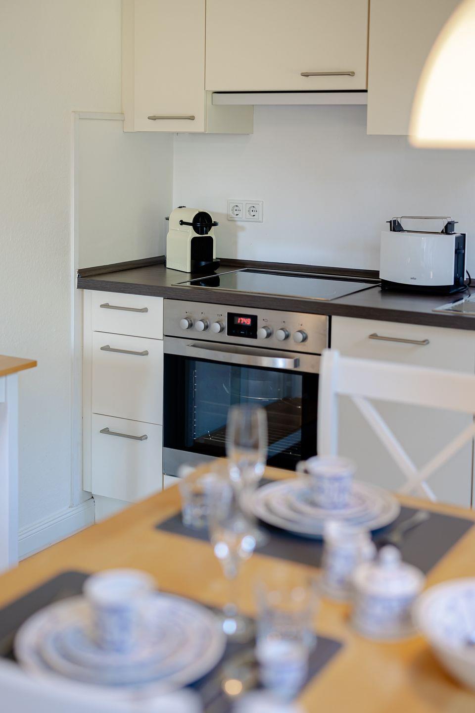 Schon beim Eintreten zeigt sich die angenehme Atmosphäre: helle Räume, hochwertige Materialien und liebevolle Details schaffen ein Wohngefühl, das sofort vertraut wirkt. Der offen gestaltete Wohnbereich mit gemütlicher Sitzecke und Essplatz lädt dazu ein, den Tag ruhig zu beginnen oder ihn entspannt ausklingen zu lassen. Die moderne Küche ist vollständig ausgestattet und bietet alles, was es für eine unkomplizierte Selbstversorgung braucht.