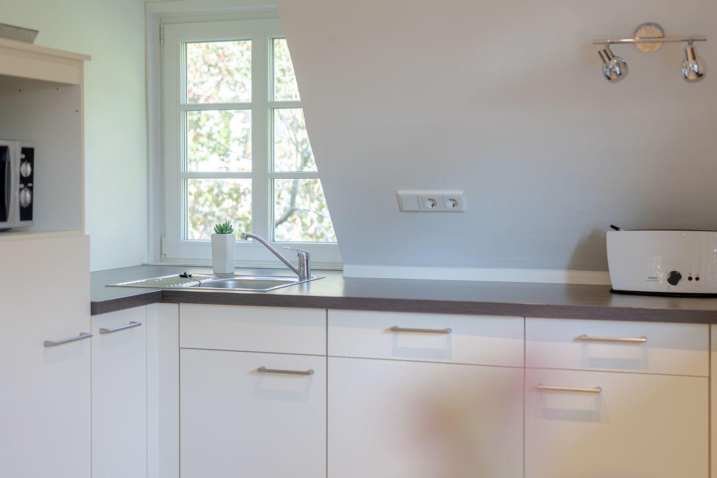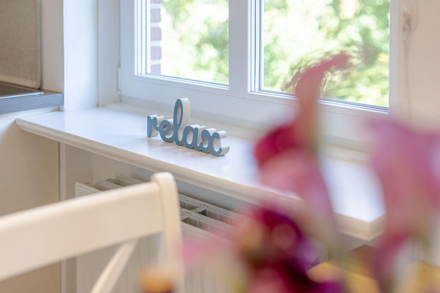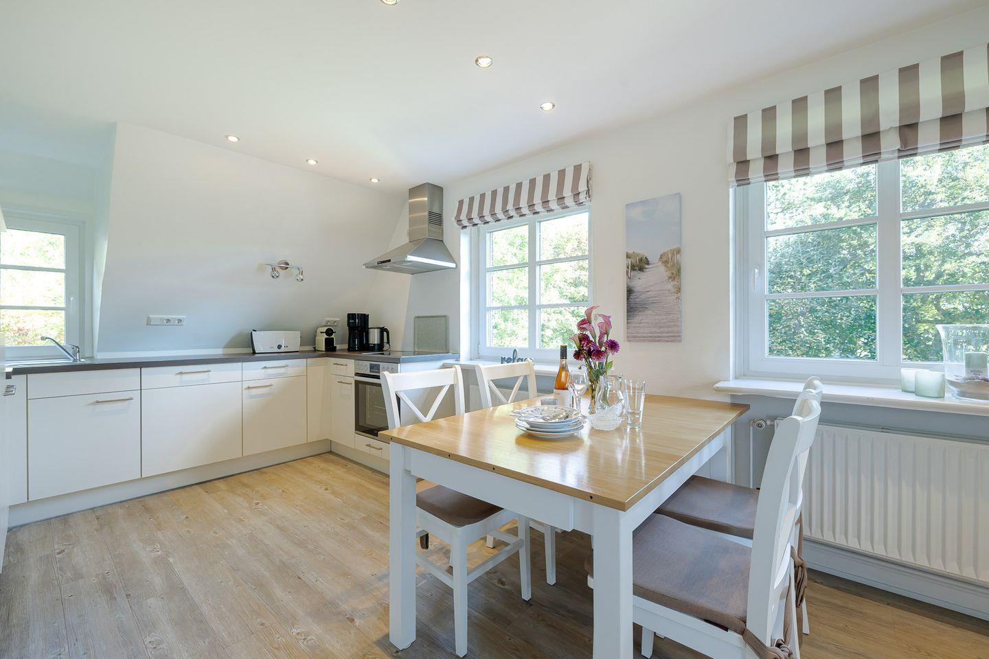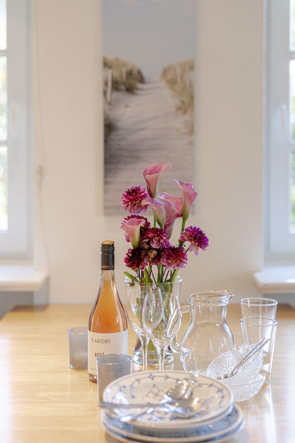 Helle Räume, natürliche Materialien und liebevolle Details prägen das Wohngefühl. Der offen gestaltete Wohnbereich mit gemütlicher Sofaecke ist ein Ort zum Zurücklehnen – nach einem Strandtag, bei einem Glas Wein oder mit einem guten Buch. Der Essplatz fügt sich selbstverständlich in den Raum ein und lädt zu gemeinsamen Mahlzeiten ein. Die moderne Küche ist vollständig ausgestattet und bietet alles, was es für eine unkomplizierte Selbstversorgung braucht.