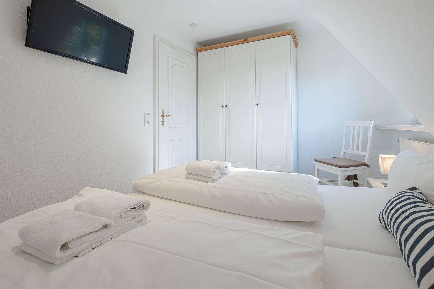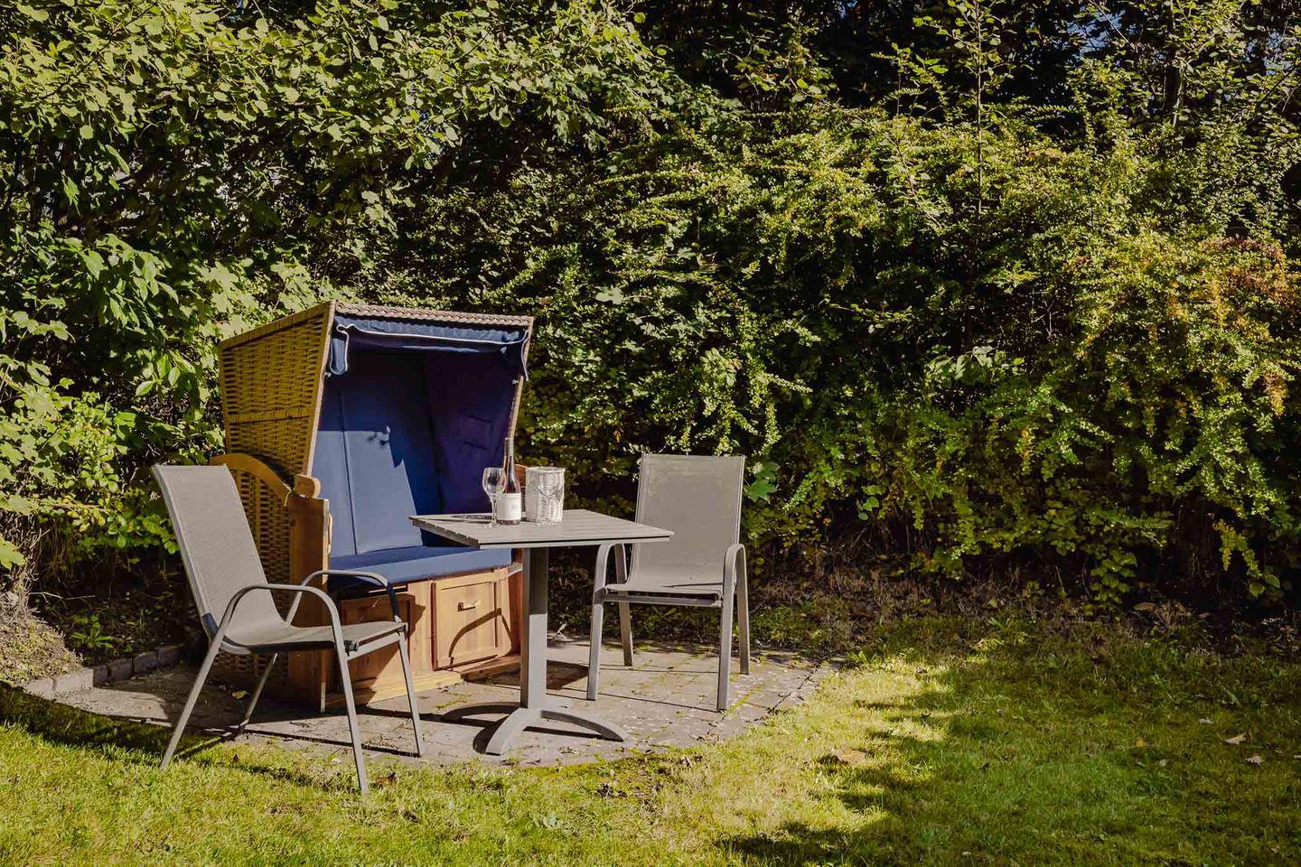 Ein besonderes Plus ist der eigene Gartenbereich, der dem Appartement exklusiv zur Verfügung steht. Hier lässt sich Zeit draußen verbringen – im Strandkorb, bei einem Frühstück in der Morgensonne oder einfach für eine ruhige Pause an der frischen Nordseeluft. Ein geschützter Ort, der den Aufenthalt angenehm ergänzt, ohne sich in den Vordergrund zu drängen.