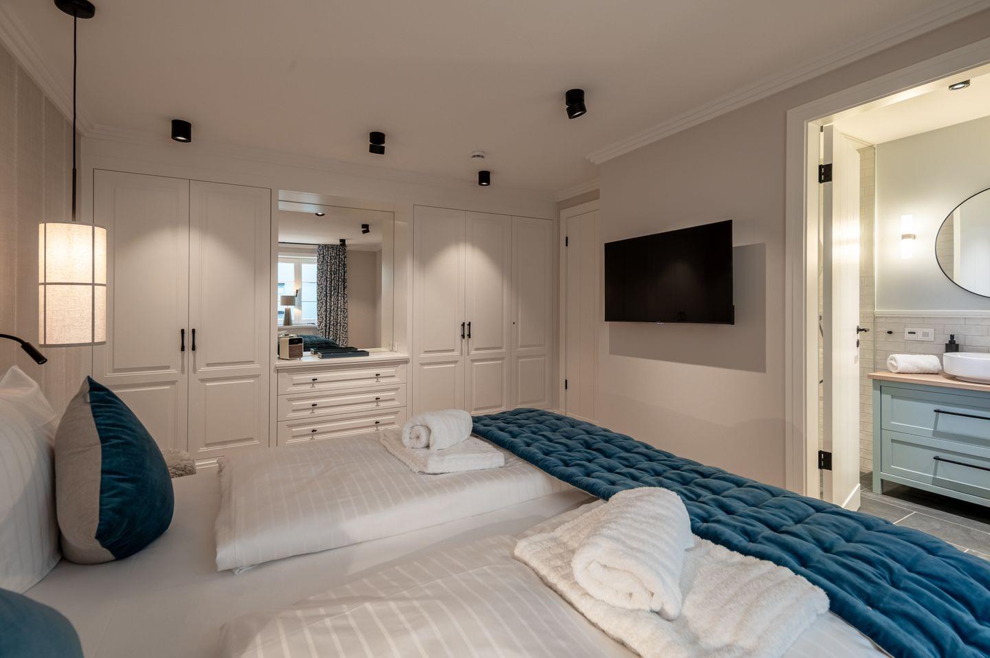 Auf Wunsch kann die angrenzende Haushälfte hinzugebucht und durch Verbindung beider Einheiten ein noch größeres Domizil geschaffen werden – ideal, um Familie und Freunde in besonderer Exklusivität willkommen zu heißen.