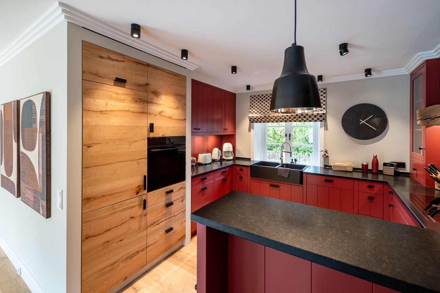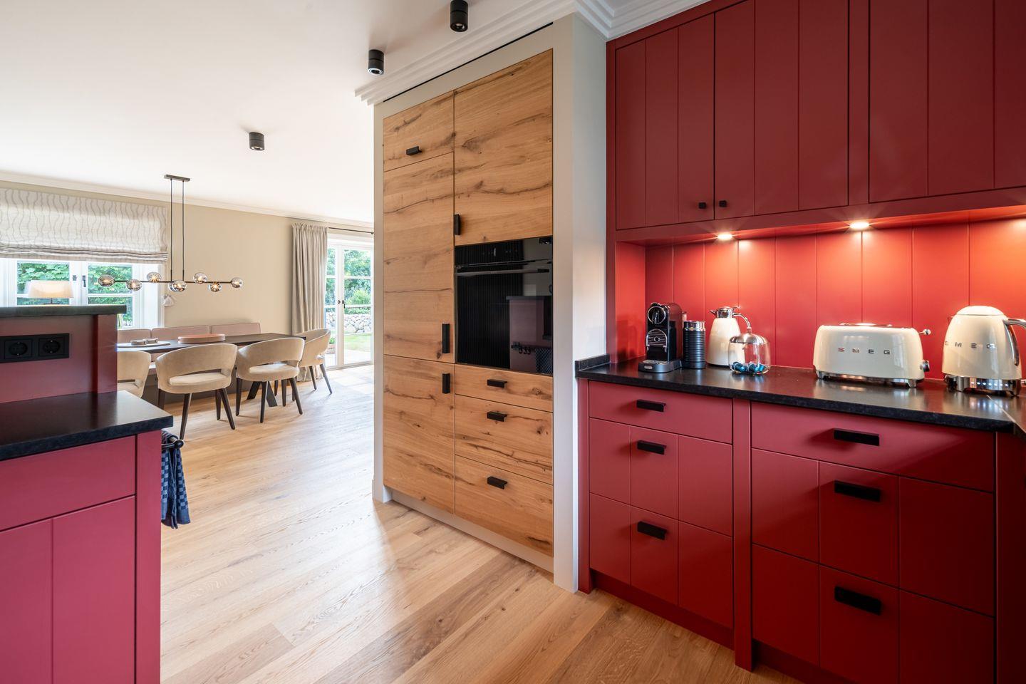 Bereits beim Betreten empfängt Sie ein lichtdurchfluteter Eingangsbereich, der Großzügigkeit und Raffinesse ausstrahlt. Das Herzstück bildet der offene Wohn- und Essbereich: eine maßgefertigte Premiumküche mit Geräten führender Hersteller sowie stilvoll kuratierte Möbelstücke schaffen ein Ambiente von einladender Exklusivität. Edle Böden, akzentuierte Wandverkleidungen und ein fein abgestimmtes Lichtkonzept unterstreichen die Liebe zum Detail. Ergänzt wird dieser Bereich durch ein separates Arbeitszimmer oder eine Bibliothek – ideal für Homeoffice mit Stil oder Rückzug auf höchstem Niveau.