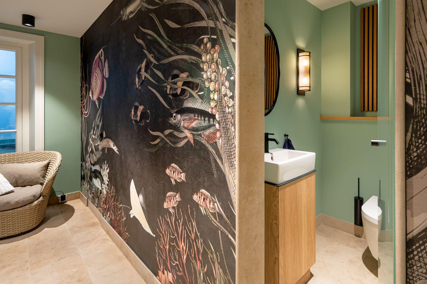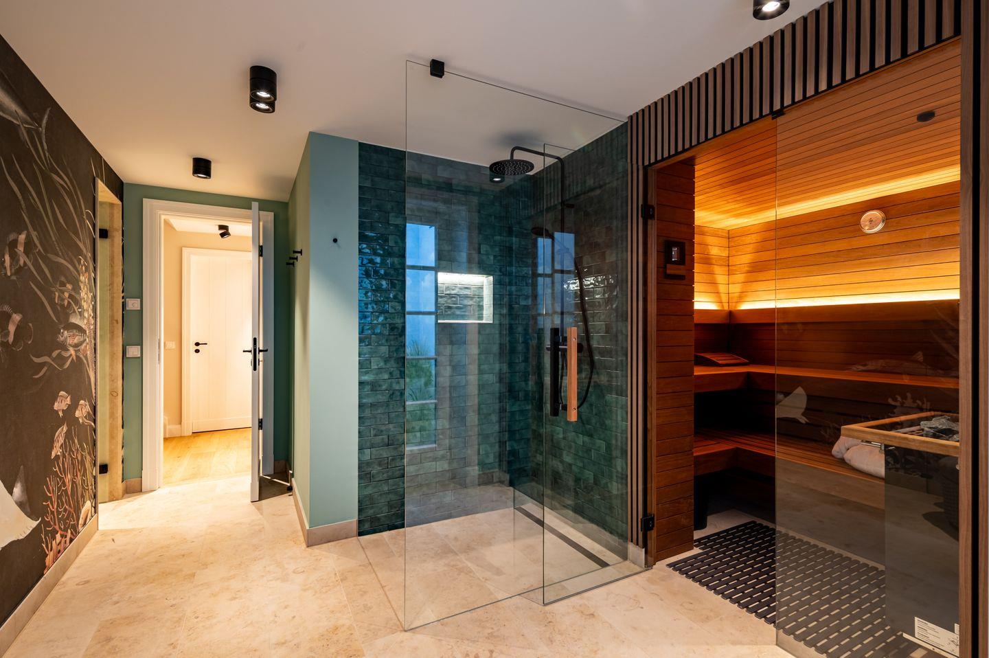 Das Untergeschoss bietet ein weiteres geschmackvoll eingerichtetes Schlafzimmer mit separaten Designerbad – ideal für Gäste oder Familienmitglieder. Ergänzt wird diese Ebene durch einen privaten Spa-Bereich mit Sauna und Regendusche – ein Ort der Ruhe und Entspannung, der Wellness auf höchstem Niveau verspricht. Alle Räume sind kompromisslos hochwertig ausgestattet und auf Funktionalität wie Wohnkomfort ausgelegt.