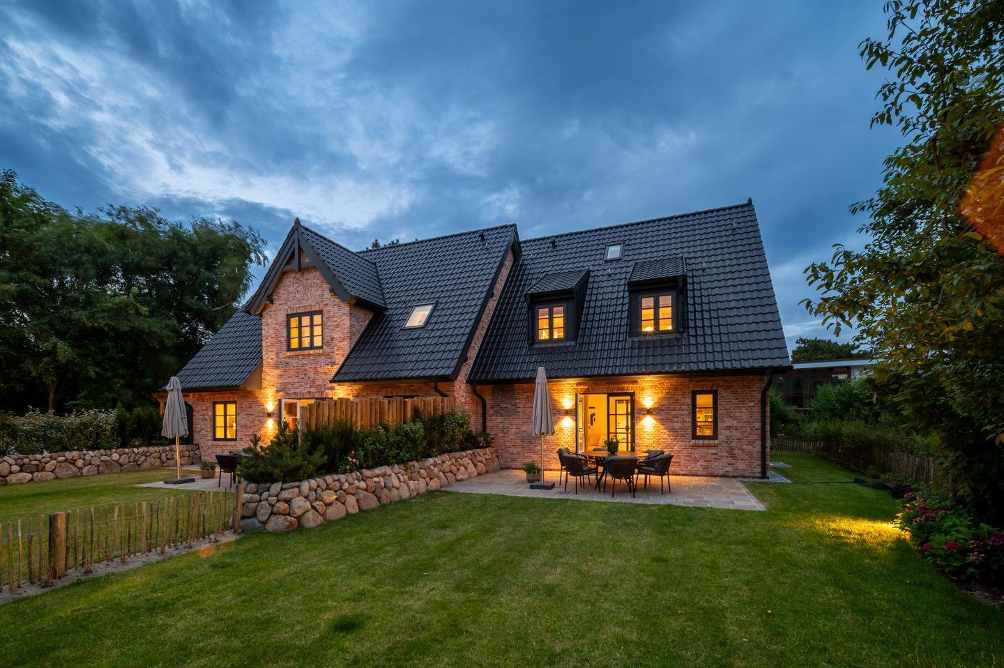 Stilvolles Designer-Ferienhaus in Westerland mit privatem Spa, Garten, Terrasse und Strandkorb am Meer.