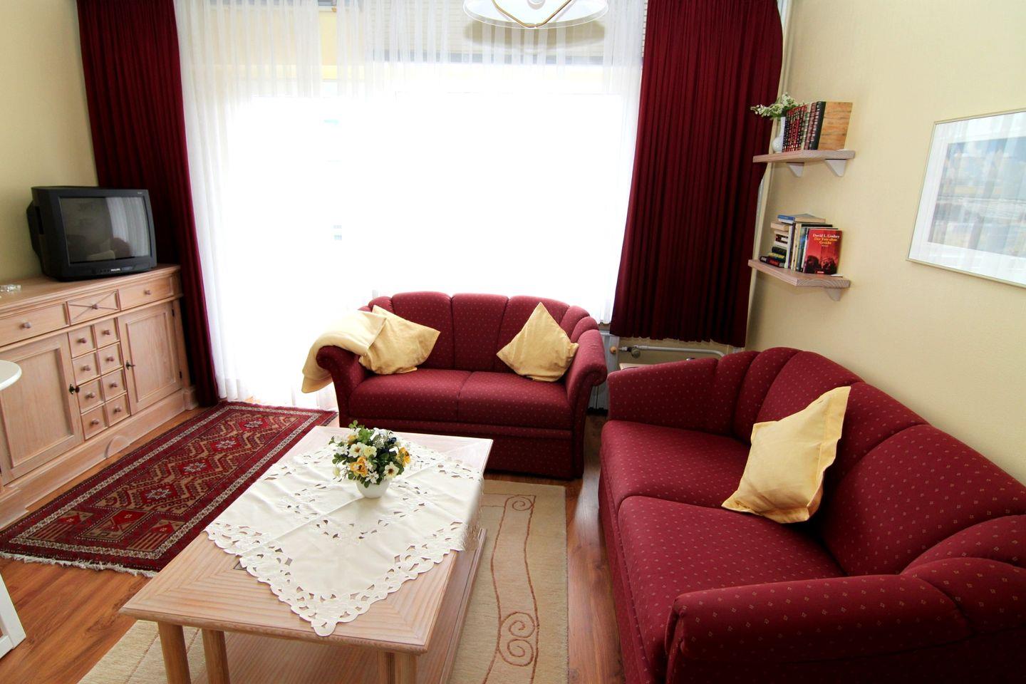 Dieses gemütliche 2-Zimmer-Appartement im 1. Obergeschoss (ca. 40 m²) ist ideal für 2 Personen und befindet sich in einem Appartementhaus mit Hallenschwimmbad und Sauna. Es bietet ein Wohnzimmer mit Sitzecke, Kabel-TV, Radio und einen Nordbalkon sowie eine separate Küche. Das Schlafzimmer ist mit einem Doppelbett (180 x 200 cm) ausgestattet, und das Badezimmer verfügt über eine Dusche und ein WC. Die Nutzung des Hallenschwimmbads ist kostenfrei, während Sauna, Sonnendusche, Waschmaschine und Trockner gegen Gebühr zur Verfügung stehen. Die Nutzung des Wellnessbereiches (Schwimmbad, Sauna usw.) wird individuell durch die Hausordnung geregelt. Ein PKW-Stellplatz und ein Abstellraum für Fahrräder sind vorhanden, jedoch ohne garantierten Stellplatz für Fahrräder. Ein Fahrstuhl sorgt für Barrierefreiheit im Gebäude. Haustiere sind in dieser Wohnung nicht gestattet.