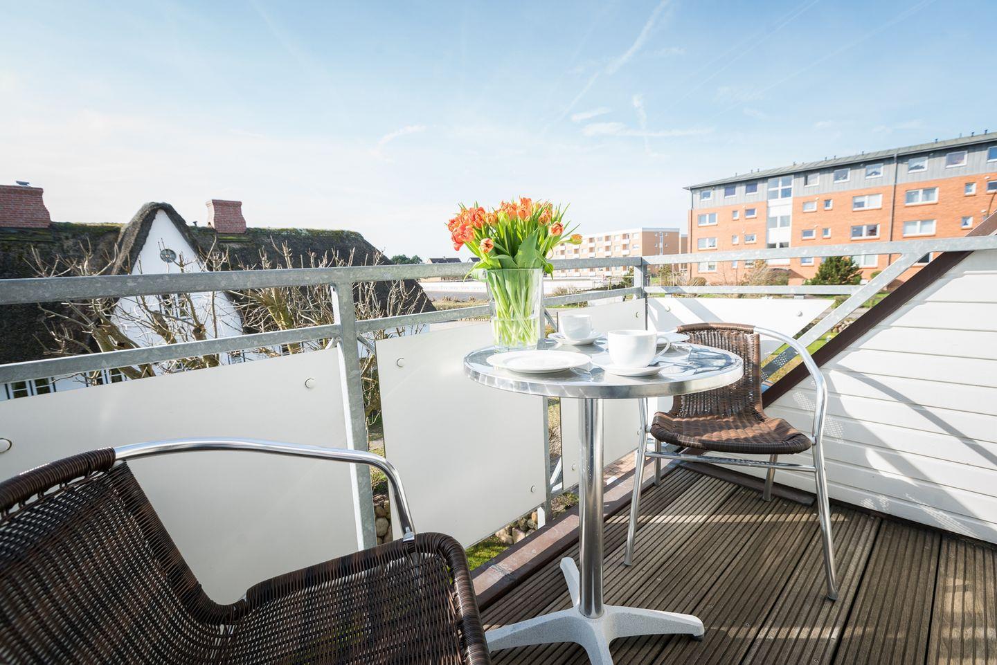 Moderne Ferienwohnung mit Balkon und Garten nahe Strand und Stadt in Westerland auf Sylt.