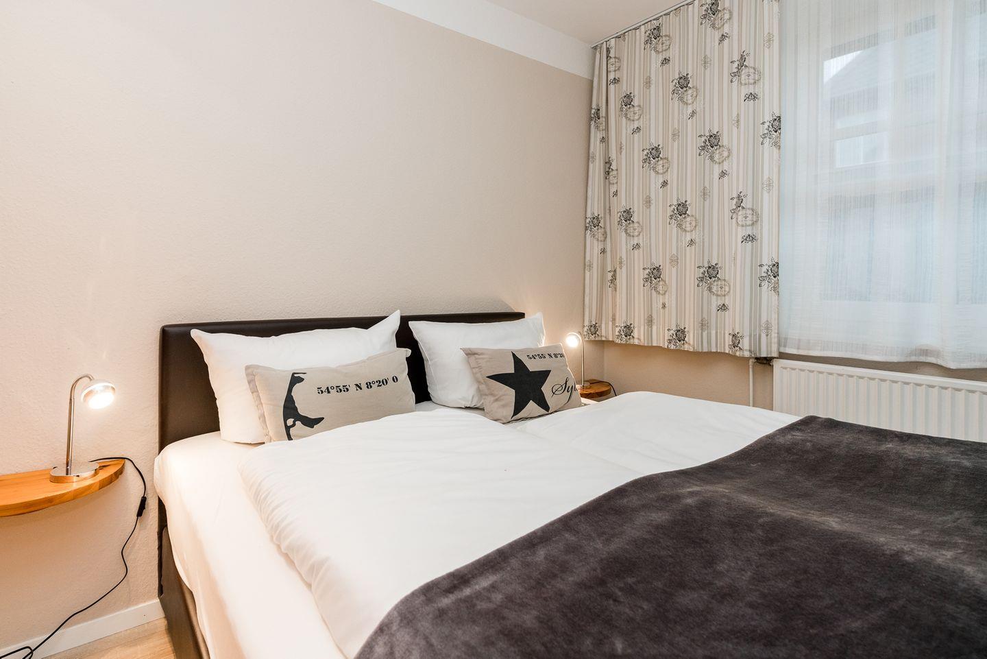 Die Wohnung verfügt über zwei separate Schlafzimmer, jeweils mit komfortablen Doppelbetten ausgestattet. Damit bietet sie ausreichend Rückzugsmöglichkeiten für alle Gäste und sorgt für erholsame Nächte nach erlebnisreichen Tagen auf der Insel.