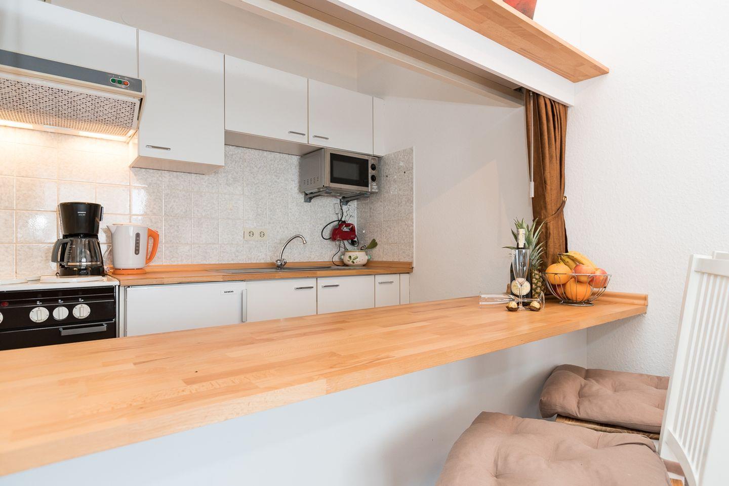 Die Unterkunft liegt im 1. OG und hat einen möblierten Balkon nach Westen. Die Wohnung verfügt über ein modernes Schrankbett im geräumigen Wohnzimmer. Zum Essen steht in diesem Appartement eine Theke mit mehreren Stühlen direkt an der Küchenzeile bereit. WLAN vorhanden (ohne Gewähr)