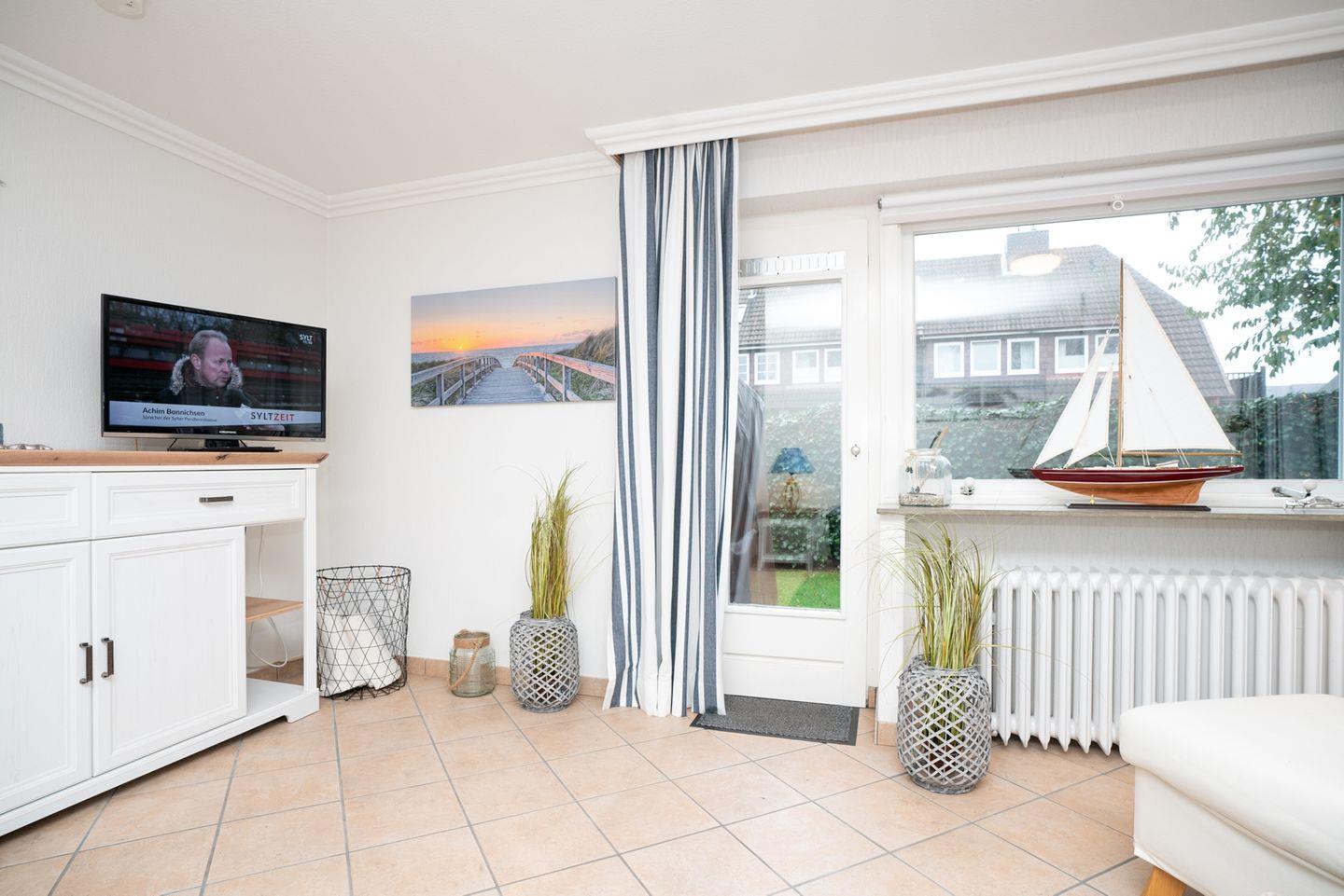 Der Bungalow wird von einem wunderschön eingewachsenen Garten umrahmt, der Ihnen zusätzliche Entspannungsmöglichkeiten im Freien bietet. Die Südterrasse lädt dazu ein, die frische Nordseeluft zu genießen, Sonnenstunden im Garten zu verbringen oder einfach den Tag auf Sylt ausklingen zu lassen.
