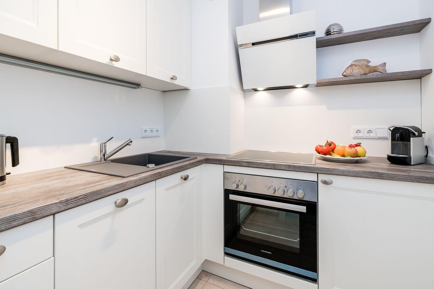 Die exklusive Küchenzeile ist vollständig ausgestattet und lässt keine Wünsche offen – von der Nespresso-Maschine über hochwertige Kochutensilien bis zum Geschirrspüler. So können Sie Ihre Mahlzeiten flexibel zubereiten und genießen.