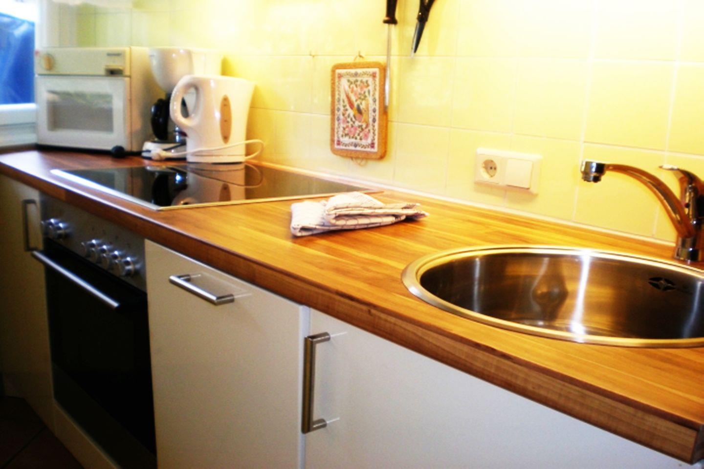 Die Küchenzeile ist funktional und praktisch eingerichtet, sodass Sie Ihre Mahlzeiten flexibel gestalten können. Sie finden hier alle wichtigen Geräte und Utensilien für die Selbstverpflegung im Urlaub.