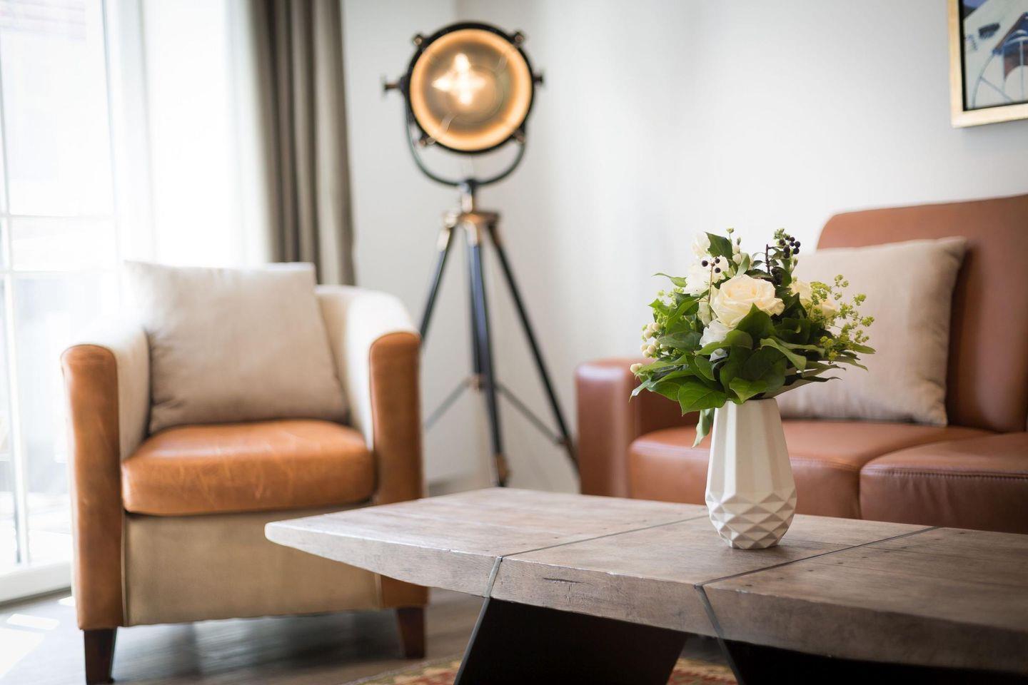 Die exklusive 2-Zimmer-Ferienwohnung 'Luigi' mit ca. 53 m² auf 1 Ebene (1. OG, Fahrstuhl vorhanden) bietet Platz für bis zu 2 Personen und besticht durch ihre zentrale Lage nur 150 Meter vom Strand entfernt. Sie befindet sich im modernen Umbau des traditionsreichen Hotels 'Seeburg' an der Kurpromenade von Westerland, das in Zusammenarbeit mit der renommierten Kunstgalerie Mensing neu gestaltet wurde. Jede der elf Wohnungen ist einem Künstler gewidmet und zeichnet sich durch individuelles Design im charmanten Retro-Look aus, ausgestattet mit hochwertigem Mobiliar aus Frankreich, Belgien und England. Hunde sind herzlich willkommen.