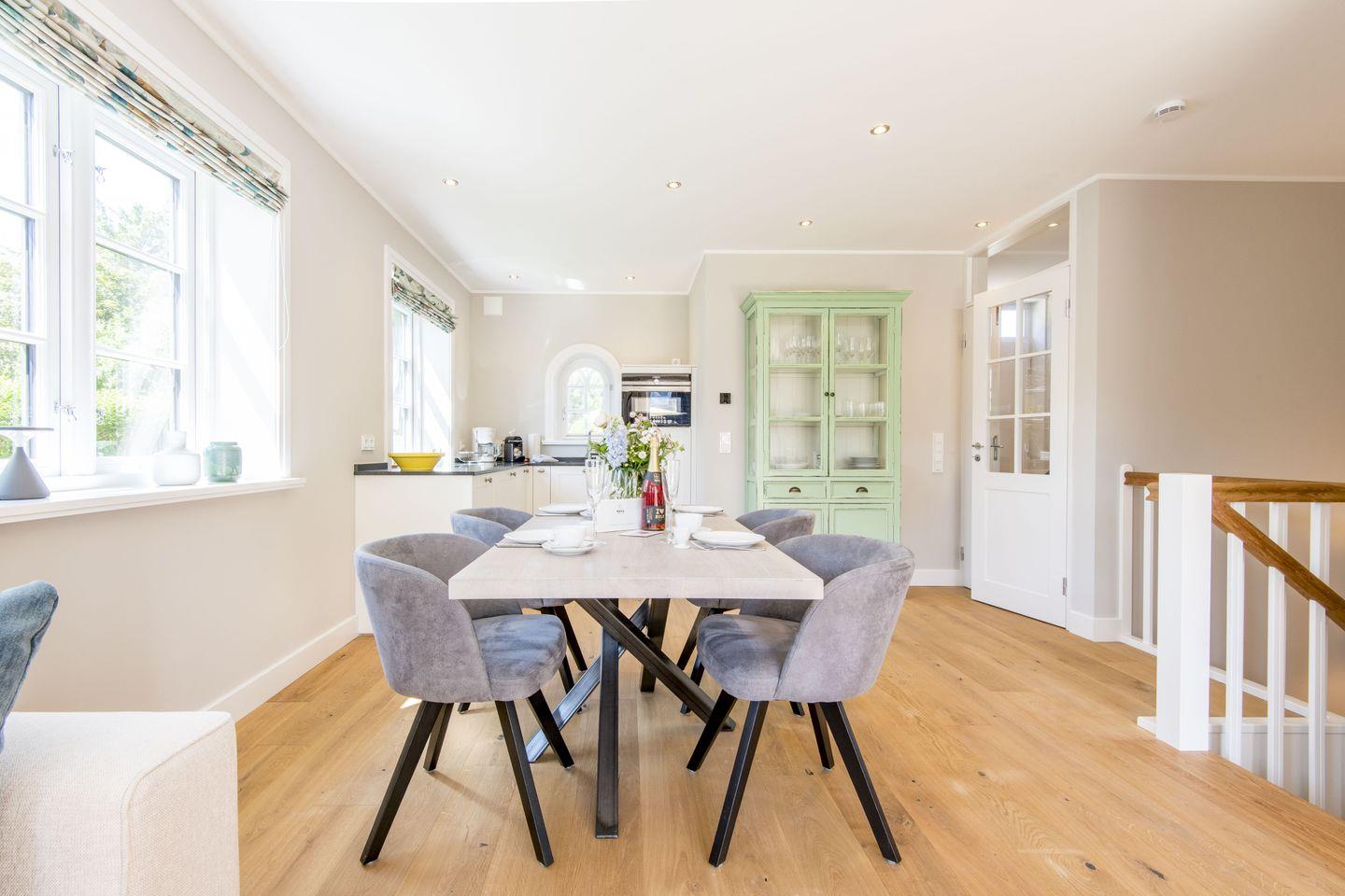 Die hochwertige, offene Tischlerküche ist modern und voll ausgestattet. Mit Geschirrspüler, Nespresso-Maschine und weiteren Annehmlichkeiten bietet sie alles, was Sie für die Zubereitung köstlicher Mahlzeiten benötigen.