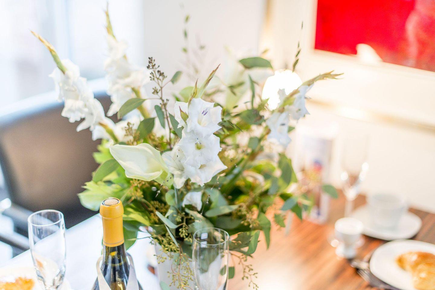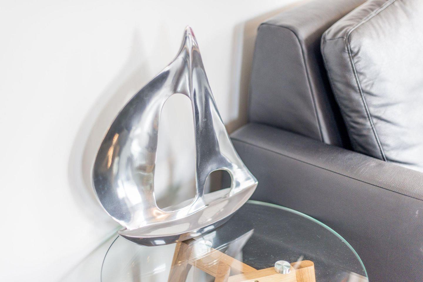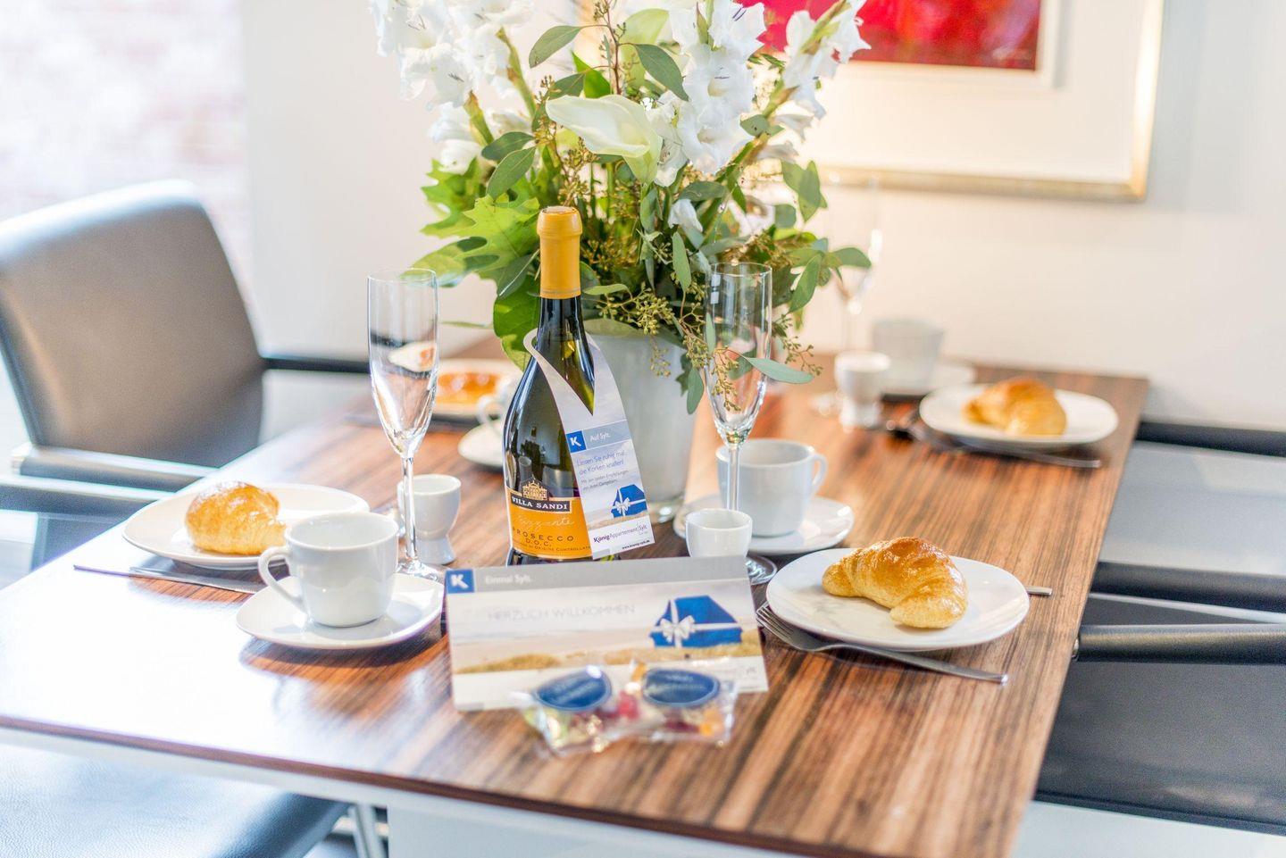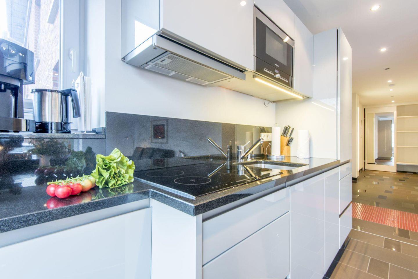 Die moderne, offene Küche verfügt über einen Induktionsherd, einen Geschirrspüler, eine Filterkaffeemaschine und ist bestens ausgestattet, um Ihre Lieblingsspeisen zuzubereiten. Der angrenzende Esstisch bietet Platz für bis zu vier Personen.