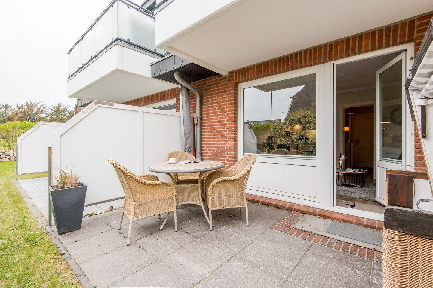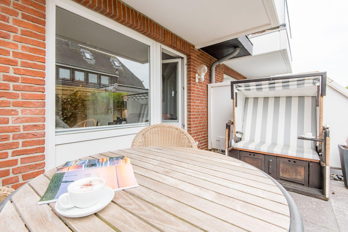 Gemütliche 2-Zimmer-Ferienwohnung mit Südterrasse und Meeresrauschen in Westerland, nur 350 m vom Strand entfernt.