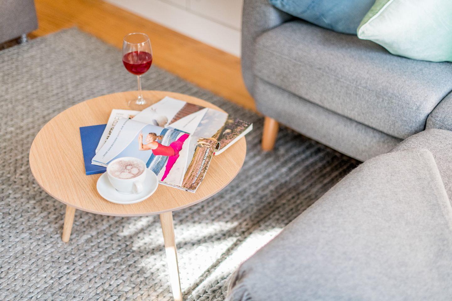 Der Wohn- und Schlafbereich bietet eine gemütliche Atmosphäre mit einem komfortablen Doppelbett (2x 90x200 cm), einem Sofa und einem Esstisch für zwei Personen. Der helle Raum mit TV und weiteren Annehmlichkeiten sorgt für höchsten Komfort und ist perfekt auf entspannte Urlaubstage abgestimmt.