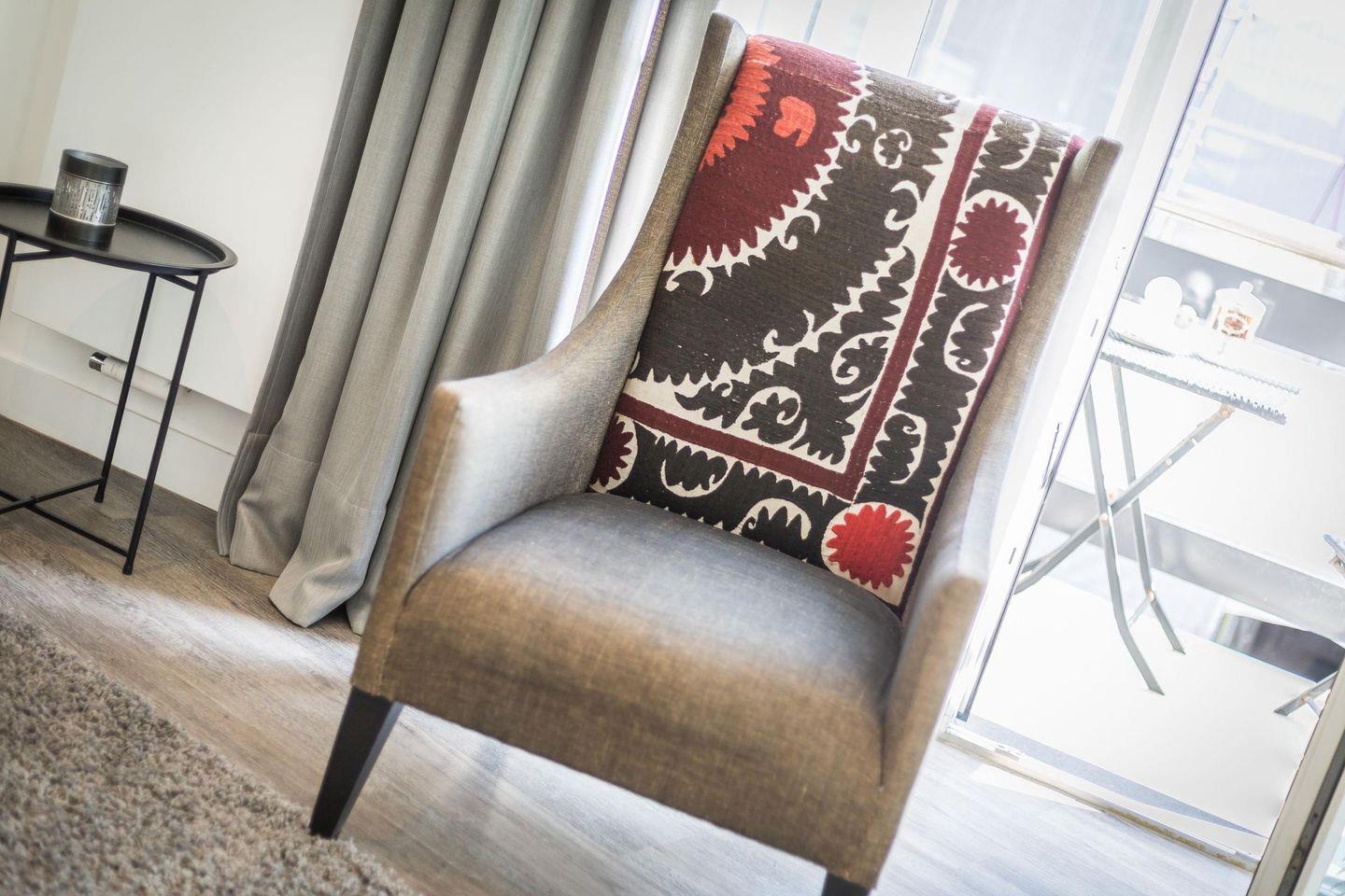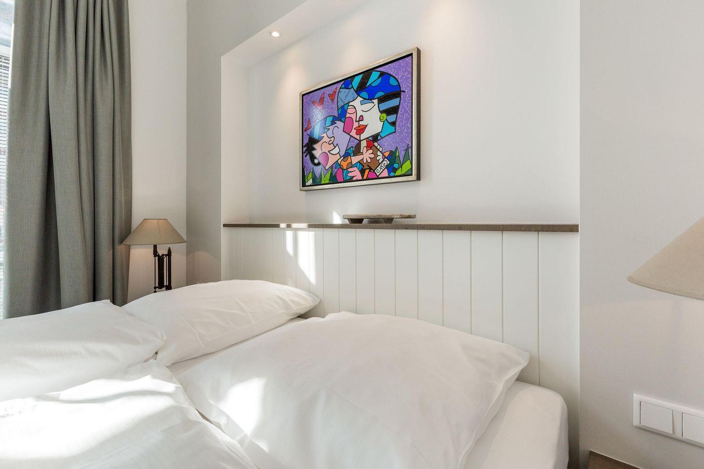 Die 2-Zimmer-Ferienwohnung 'Romero' bietet auf ca. 60 m² Wohnfläche im 1. Obergeschoss (mit Fahrstuhl) eine luxuriöse Unterkunft für bis zu 2 Personen. Diese exklusive Wohnung befindet sich in Westerland auf Sylt, in unmittelbarer Nähe zur Kurpromenade und nur 150 Meter vom Strand entfernt. Der moderne Umbau des traditionsreichen Hotels 'Seeburg' wurde von der Kunstgalerie Mensing kuratiert, wodurch jede Wohnung individuell im Retro-Look gestaltet wurde. Die stilvolle Einrichtung mit Mobiliar aus Frankreich, Belgien und England schafft eine besondere Wohlfühlatmosphäre.