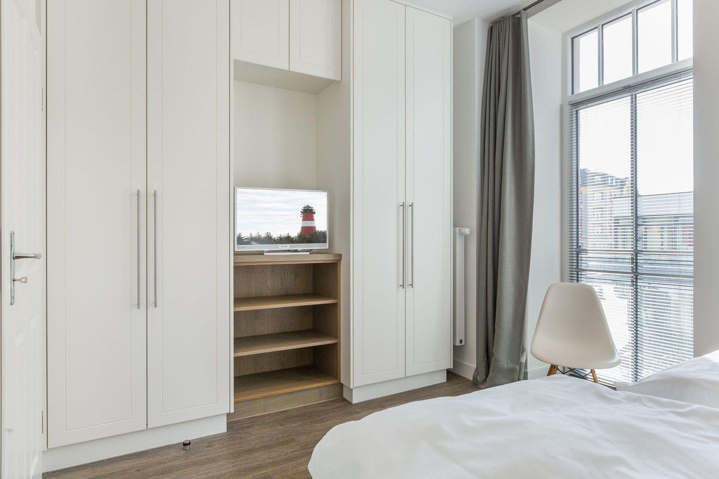 Das Schlafzimmer ist mit einem komfortablen Doppelbett (2x 90x200 cm) und einem Einbauschrank ausgestattet, der viel Stauraum bietet. Ein zusätzliches TV sorgt für Unterhaltung, falls Sie den Abend im Bett ausklingen lassen möchten. Das stilvolle Badezimmer verfügt über eine Badewanne, eine separate Dusche, WC, Fön und einen Handtuchwärmer – ein eleganter Rückzugsort nach einem Tag am Strand.
