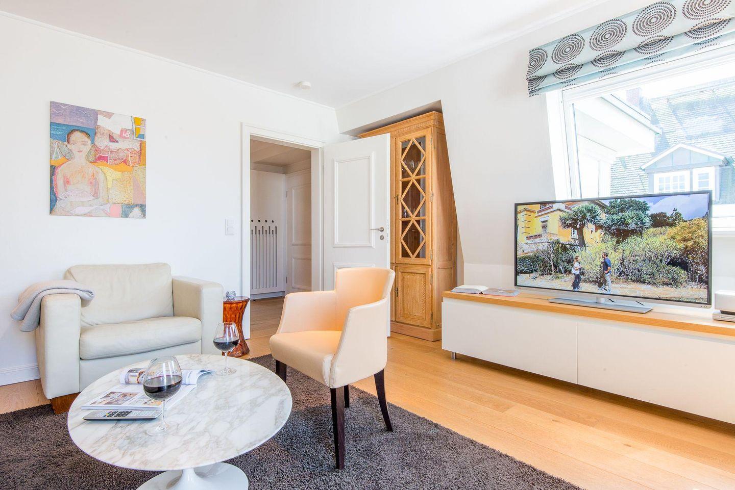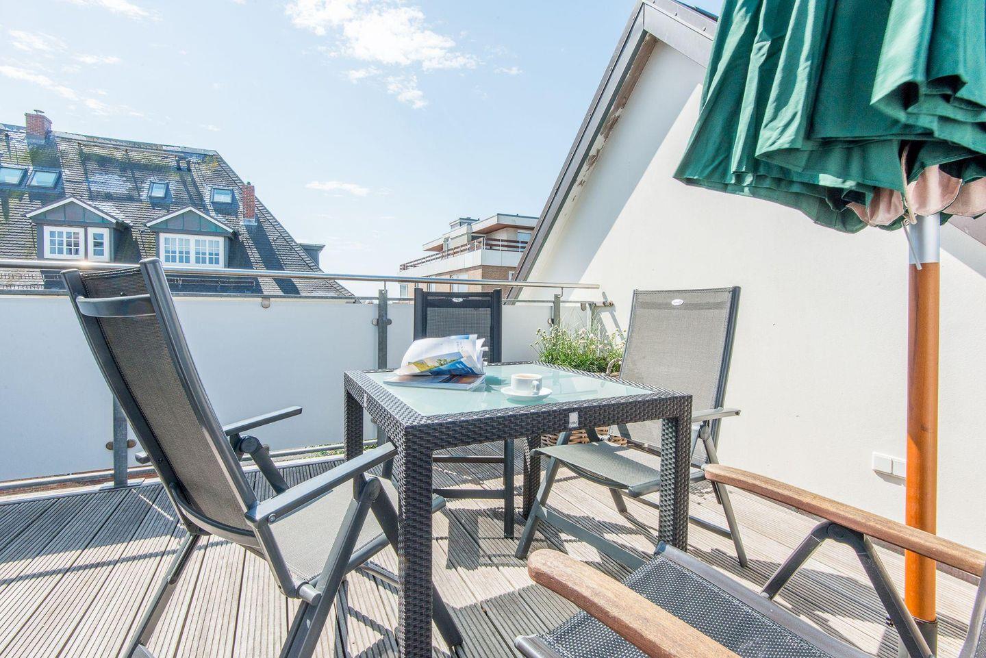 Elegante 3-Zimmer-Ferienwohnung in Westerland mit Dachterrasse und Wellnessbereich für erholsame Urlaubstage.