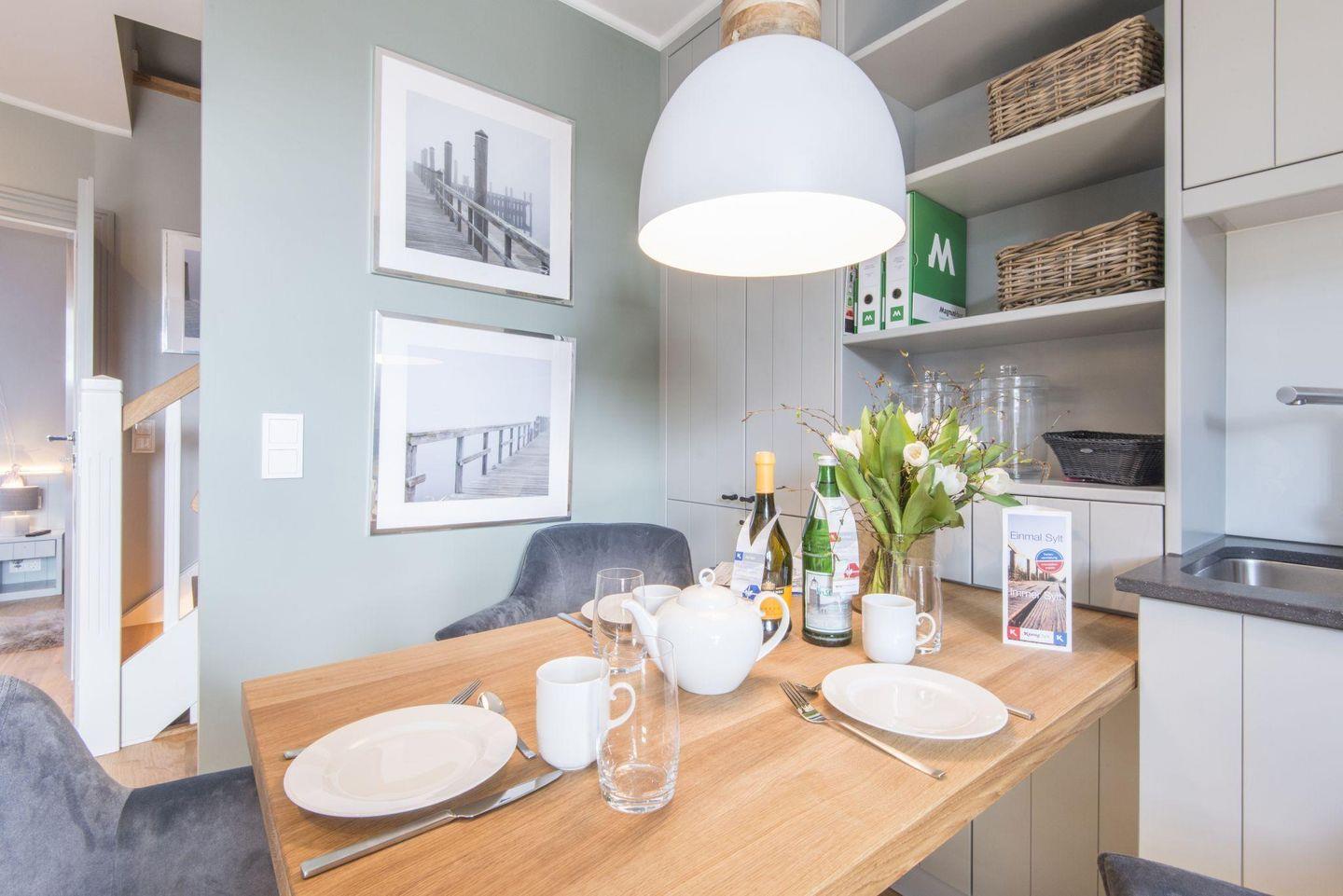 Die offene Küche bietet alles, was Sie für eine komfortable Selbstversorgung benötigen. Mit modernen Annehmlichkeiten wie Cerankochfeld, Geschirrspüler und weiteren Küchengeräten ist sie perfekt ausgestattet, um Ihre Urlaubstage kulinarisch abzurunden.
