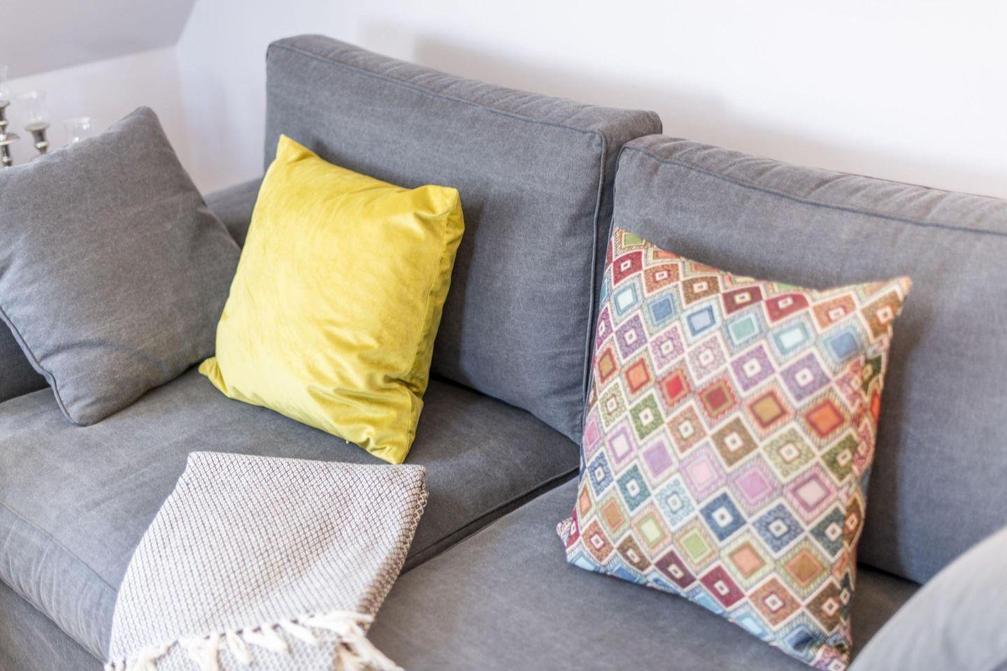 Der helle Wohnbereich verfügt über eine bequeme Schlafcouch, die sich ideal für eine dritte Person eignet. Der Wohn- und Essbereich ist offen gestaltet, wodurch eine gesellige und entspannte Atmosphäre entsteht. Hier lässt es sich nach einem erlebnisreichen Tag perfekt entspannen.