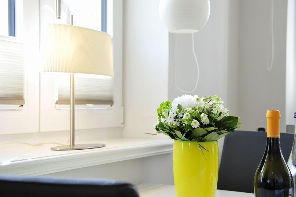 Die offene Küche ist modern ausgestattet und verfügt über eine Filterkaffeemaschine sowie eine Kapselmaschine von Tchibo. Hier finden Sie alles, was Sie für die Zubereitung Ihrer Lieblingsgerichte benötigen.