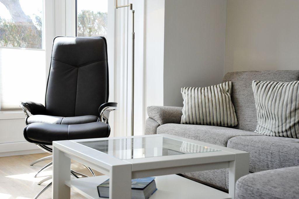 Exklusive 3-Zimmer-Ferienwohnung in Westerland mit Sauna, Terrasse und Tiefgaragenstellplatz, nur 450 m vom Strand entfernt.