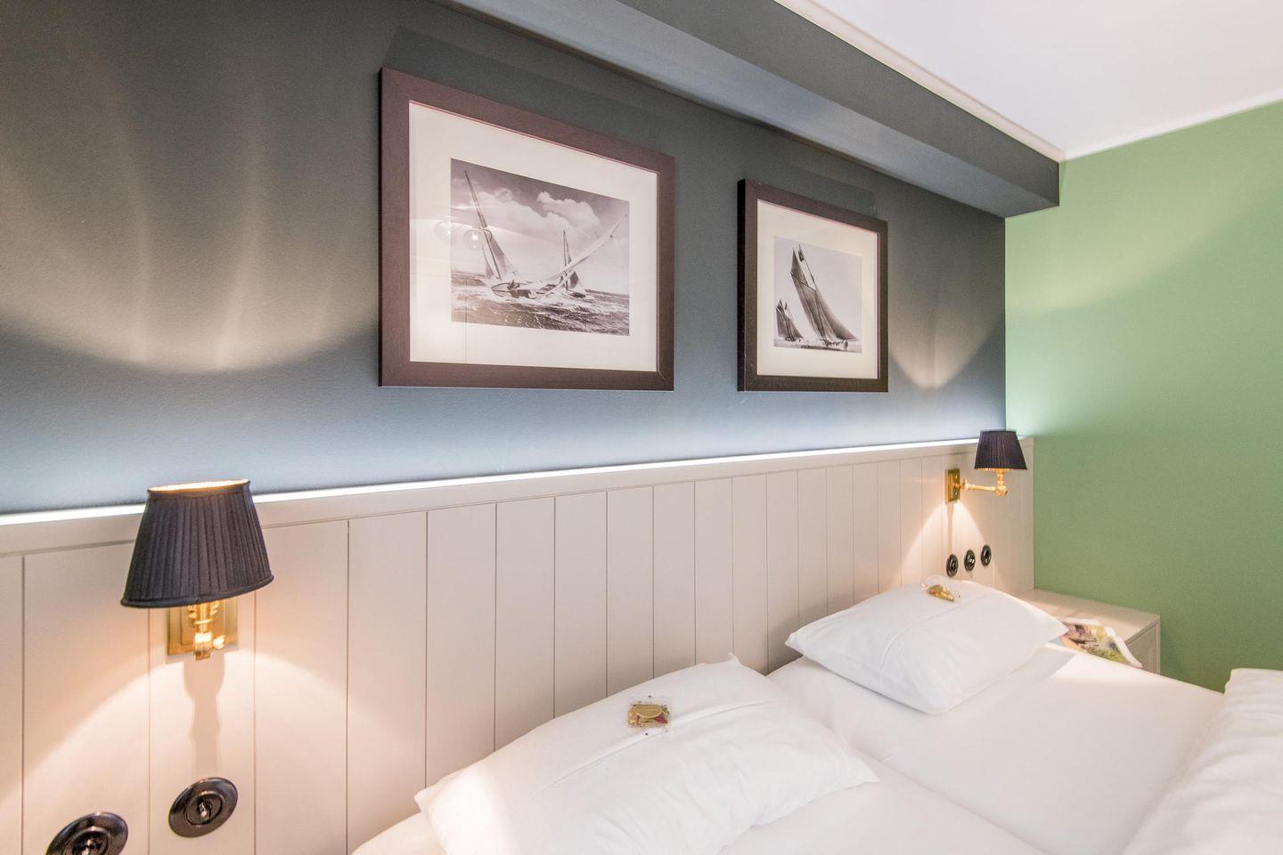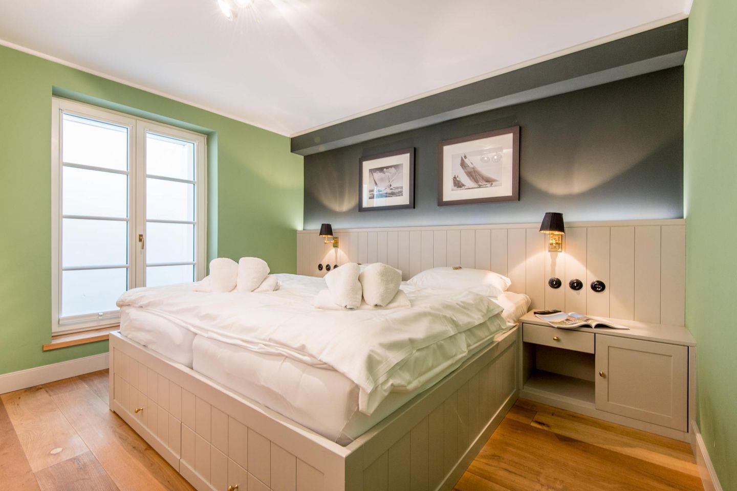 Das Schlafzimmer bietet ein komfortables Doppelbett (2x 90x200 cm) mit hochwertigen TEMPUR-Matratzen sowie einen Einbauschrank und einen TV für entspannte Stunden.