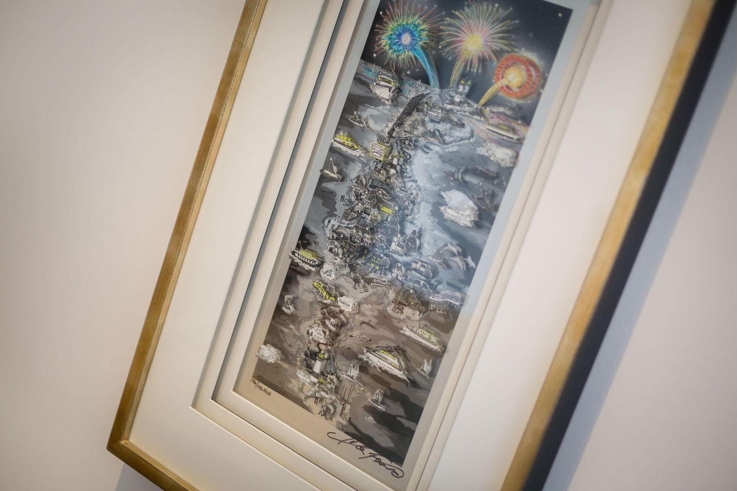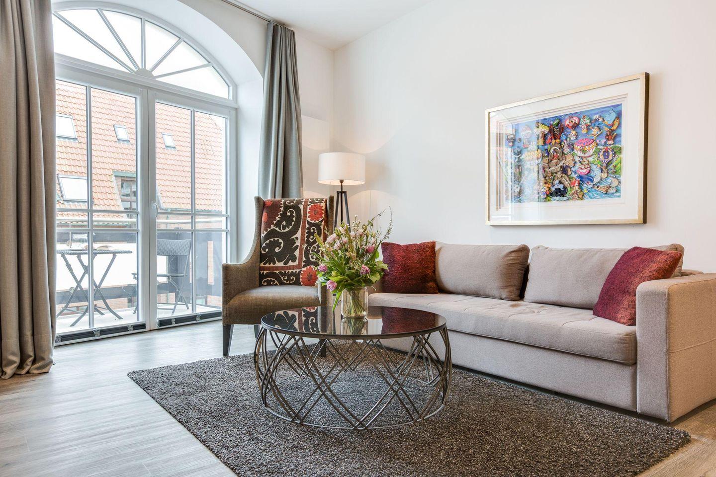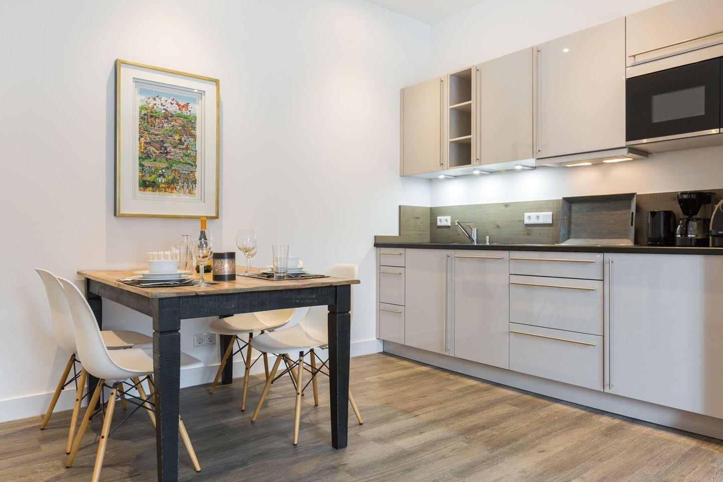 Die stilvolle 2-Zimmer-Ferienwohnung 'Charles' bietet auf ca. 53 m² im 2. Obergeschoss (mit Fahrstuhl) eine luxuriöse Unterkunft für bis zu 2 Personen. Das moderne Design der Wohnung, das in Zusammenarbeit mit der Kunstgalerie Mensing kreiert wurde, verleiht ihr eine besondere Note: Jeder Raum ist individuell in einem Retro-Look gestaltet und das Mobiliar stammt aus Frankreich, Belgien und England, was eine exklusive und einladende Atmosphäre schafft.