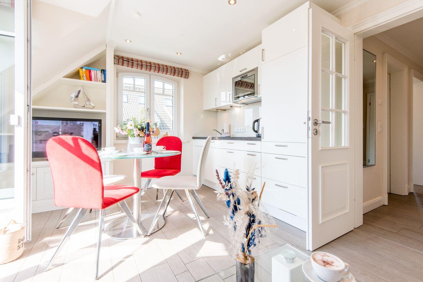 Moderne 3-Zimmer-Ferienwohnung in Westerland mit Westbalkon, Tiefgaragenstellplatz und strandnaher Lage für bis zu 4 Personen.