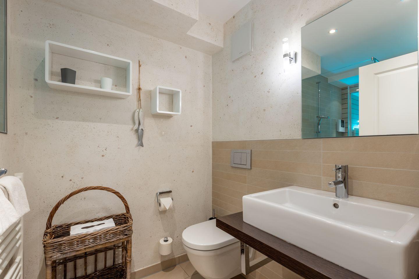 Für entspannte Wellnessmomente verfügt die Wohnung über eine eigene Sauna. Im Hauswirtschaftsraum befinden sich eine Waschmaschine und ein Trockner, die Ihnen für die Dauer Ihres Aufenthalts zur Verfügung stehen.