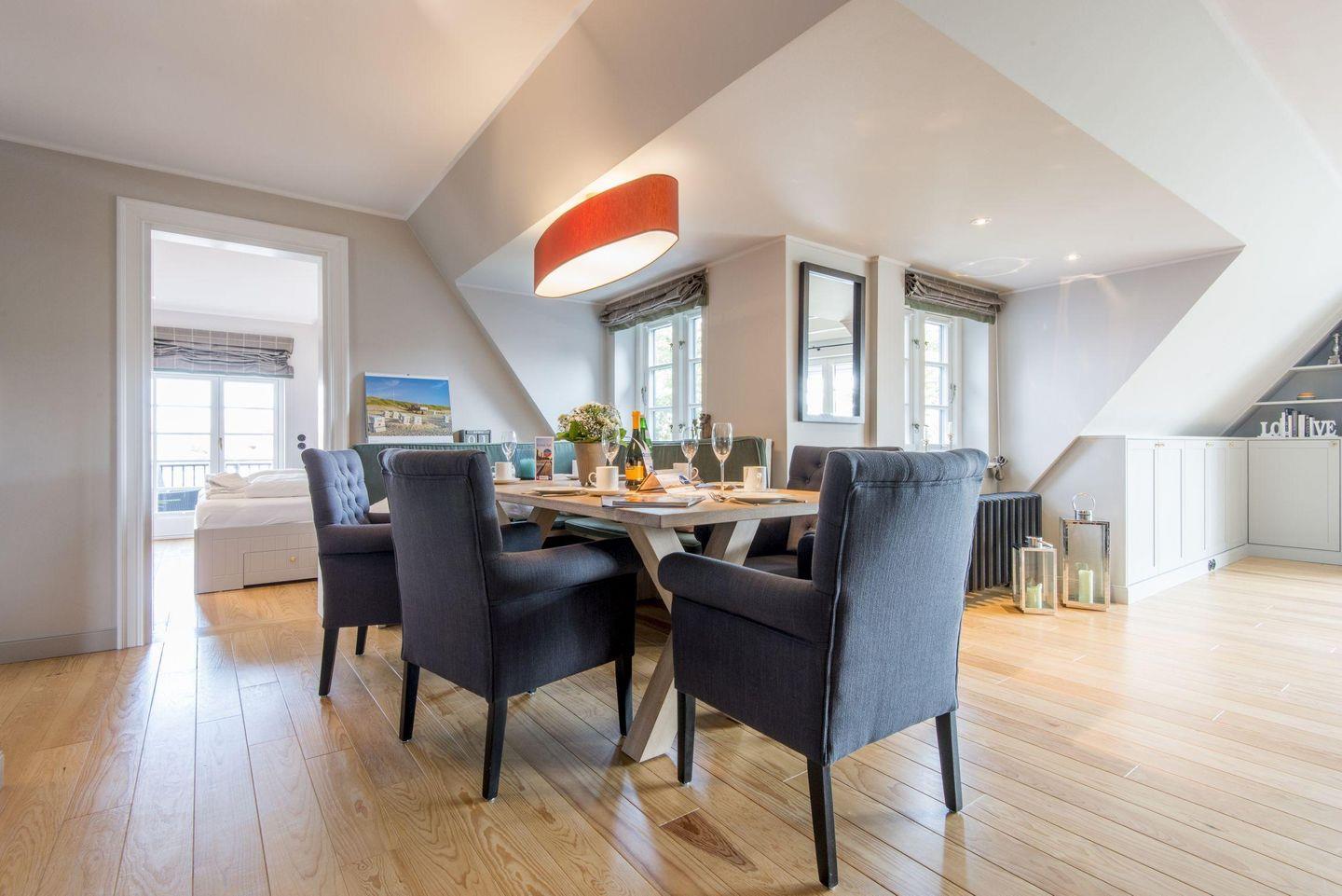 Luxuriöse 5-Zimmer-Ferienwohnung in Westerland mit Sauna, Kamin und Dachterrasse, nur 600 m vom Strand entfernt.