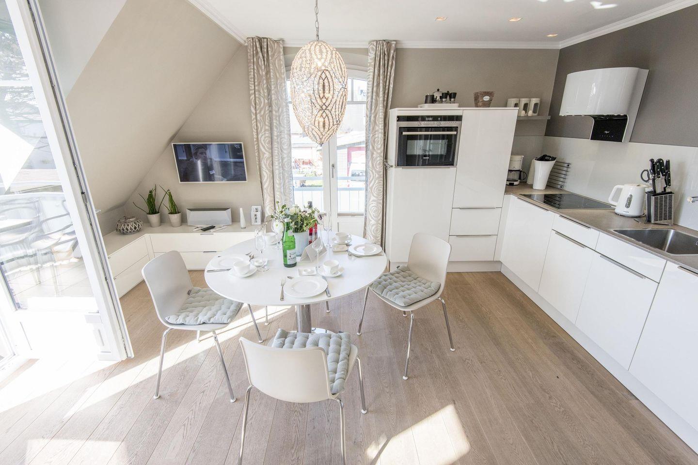 Exklusive 3-Zimmer-Ferienwohnung "White Sands" in Westerland mit Süd-Balkon, Dampfbad und Tiefgaragenstellplatz.