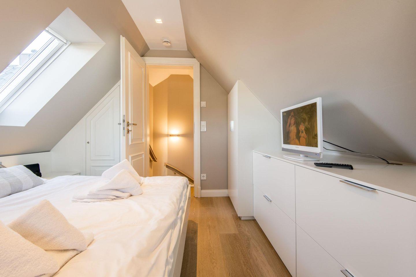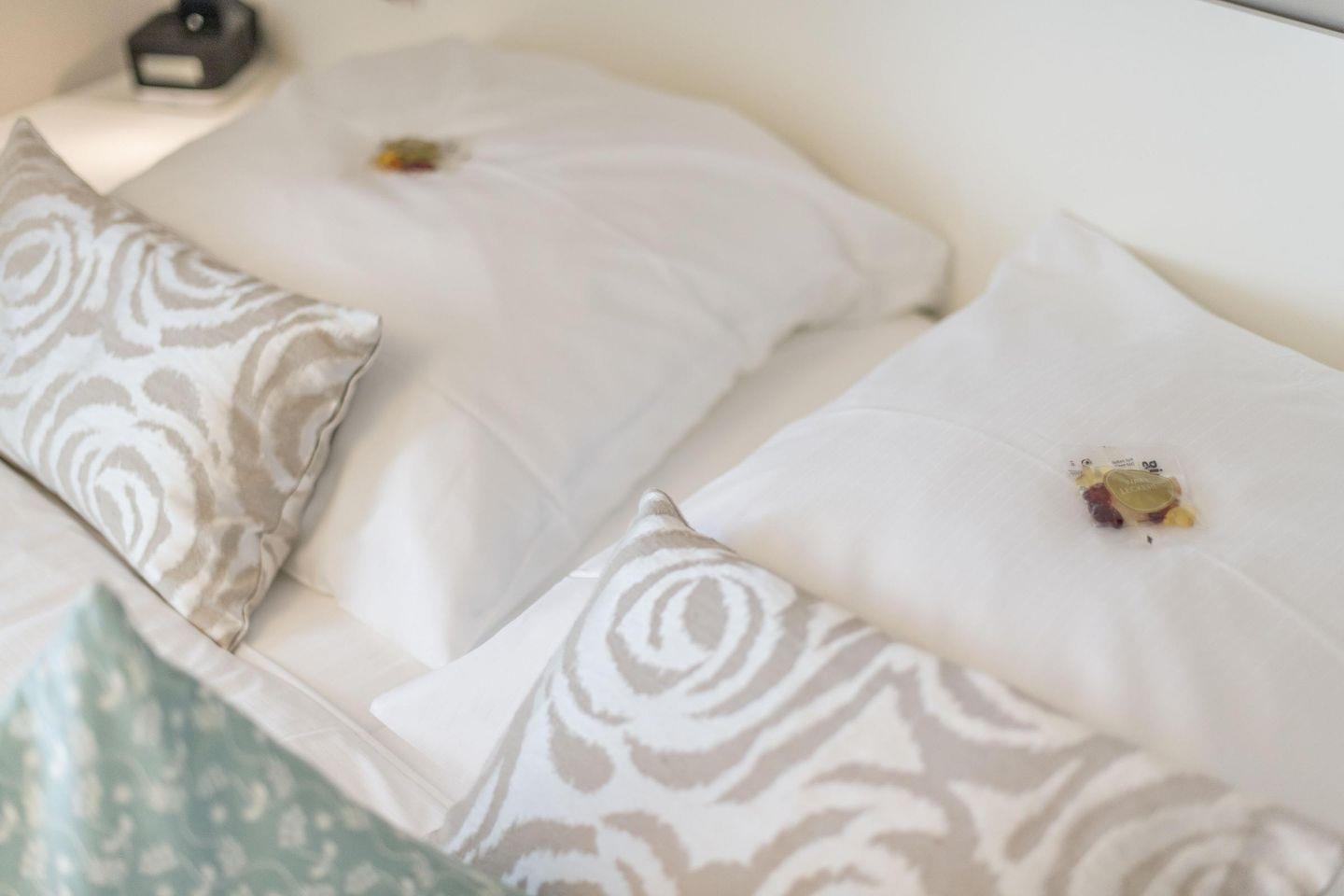 Das erste Schlafzimmer verfügt über ein komfortables Doppelbett (2x 80x200 cm), einen Einbauschrank und einen TV. Im zweiten Schlafzimmer befindet sich ebenfalls ein Doppelbett (2x 90x200 cm), ein Einbauschrank, ein TV und ein kleiner Klapp-Schreibtisch. Beide Zimmer sind mit hochwertigen 21 cm hohen Mehrzonen-Matratzen ausgestattet, die besonders für empfindliche Schultern ideal sind.