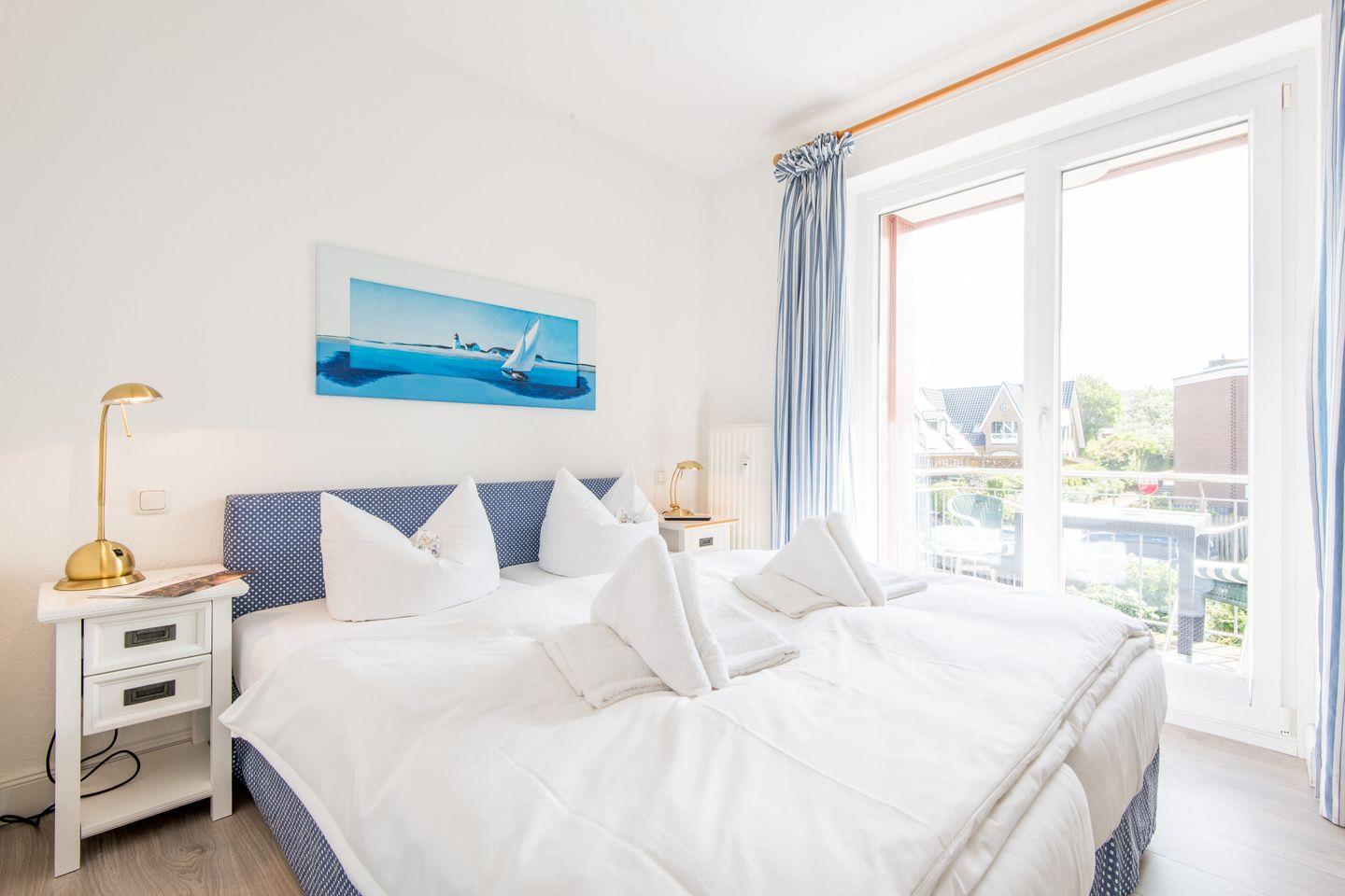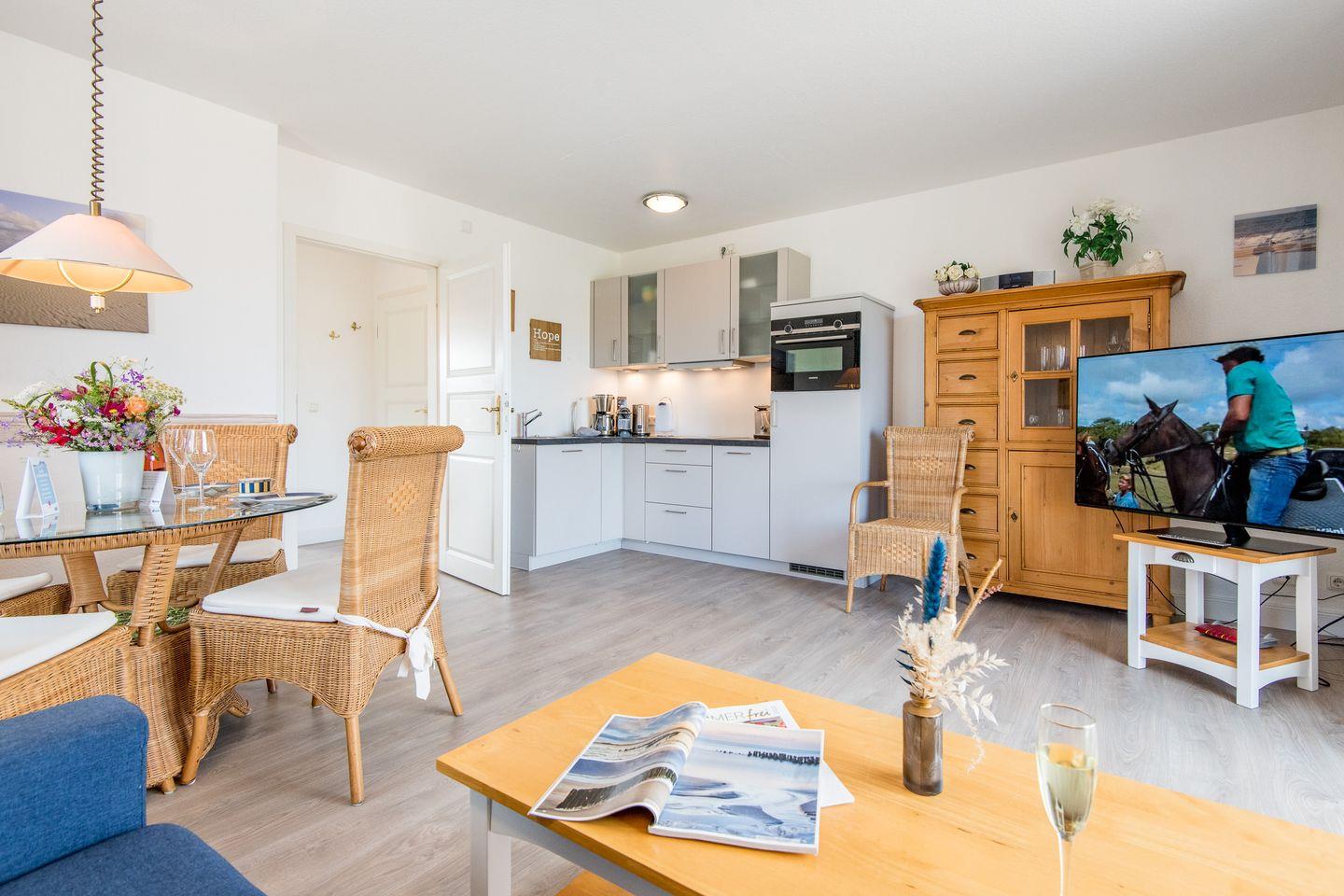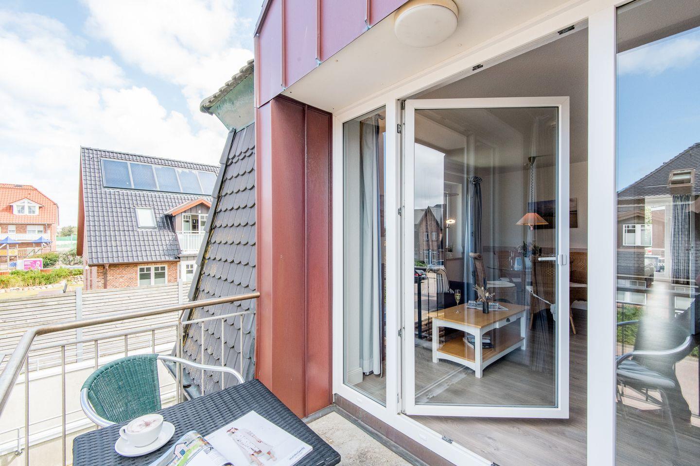 Charmante 2-Zimmer-Ferienwohnung in Westerland mit zwei Balkonen, moderner Küche und Tiefgaragenstellplatz nur 450 m vom Strand entfernt.