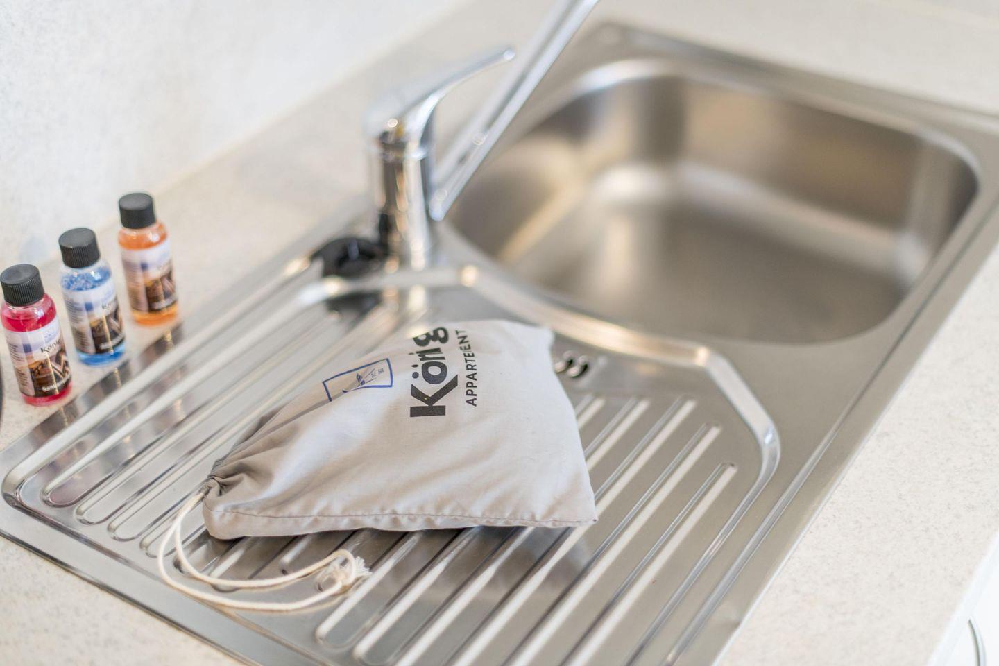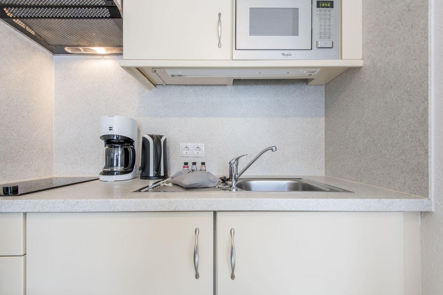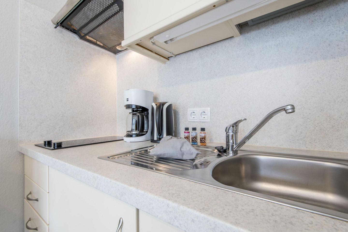 Die kompakte Küche ist mit einem 2-flammigen Herd, einem Geschirrspüler und allem nötigen Komfort ausgestattet, sodass Sie sich selbst versorgen können.