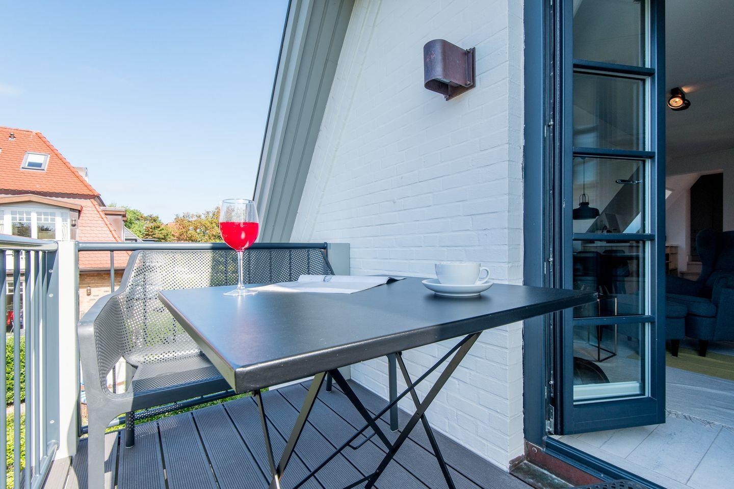 Moderne 3-Zimmer-Ferienwohnung in Westerland mit Wellnessbereich, Kamin und Balkon, nur 600 m vom Strand entfernt.