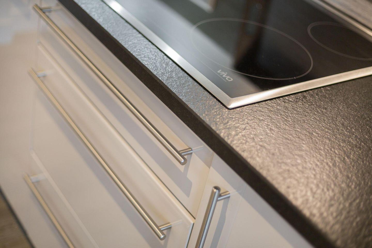 Die offene Küche bietet alles, was Sie für die Zubereitung Ihrer Mahlzeiten benötigen. Mit einem modernen Cerankochfeld und einer Filterkaffeemaschine ausgestattet, fügt sie sich harmonisch in den Wohnbereich ein. Der Esstisch bietet Platz für vier Personen und ist ideal für gemütliche Abende.