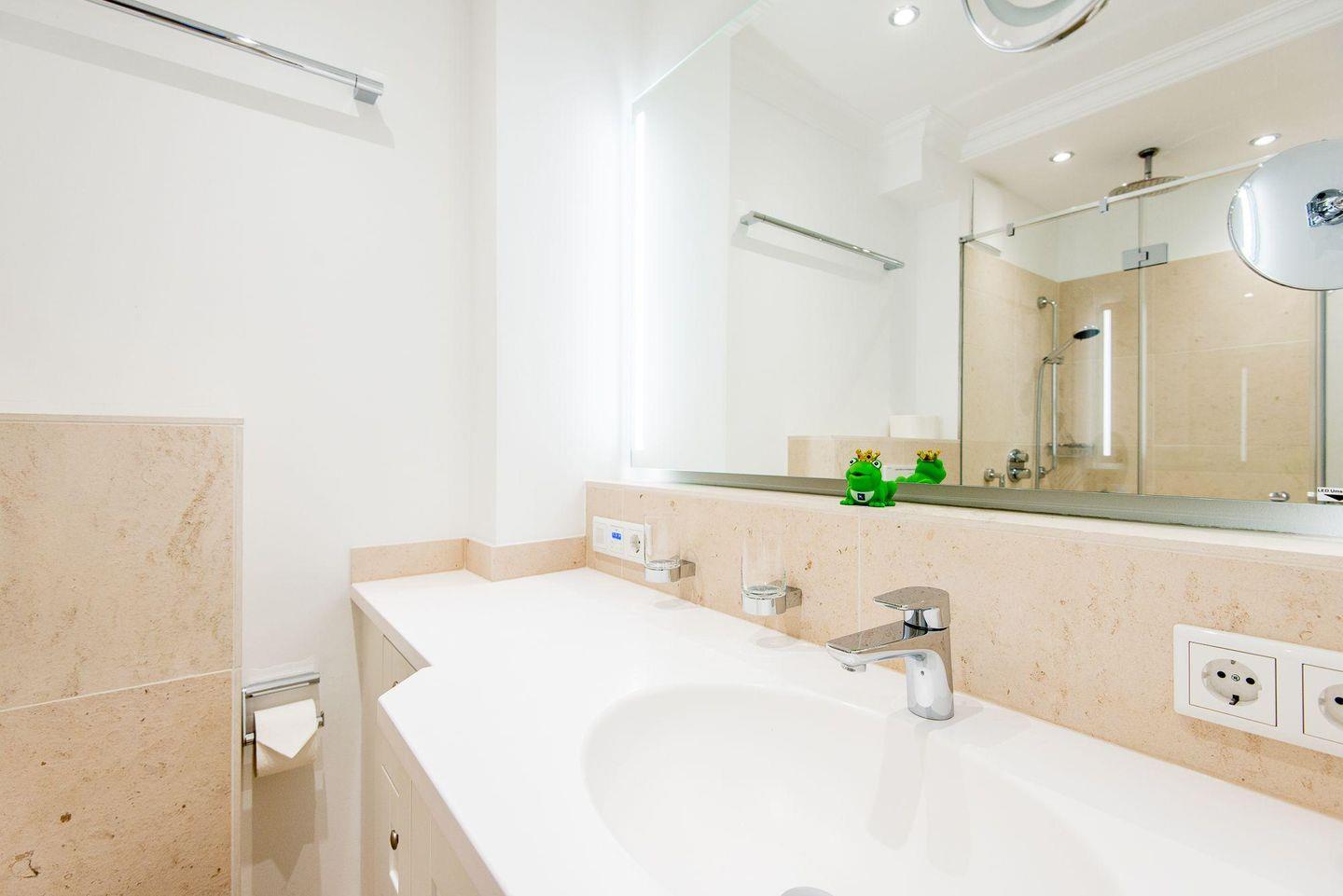 Genießen Sie nach einem Tag am Strand oder einer Wanderung im Watt den exklusiven Wellnessbereich des Hauses, der eine finnische Sauna, ein Dampfbad und eine erfrischende Schwalldusche bietet – perfekt, um die Seele baumeln zu lassen und sich etwas Gutes zu tun. Der gemeinschaftliche Waschkeller mit Waschmaschine und Trockner steht Ihnen ebenfalls zur Verfügung.