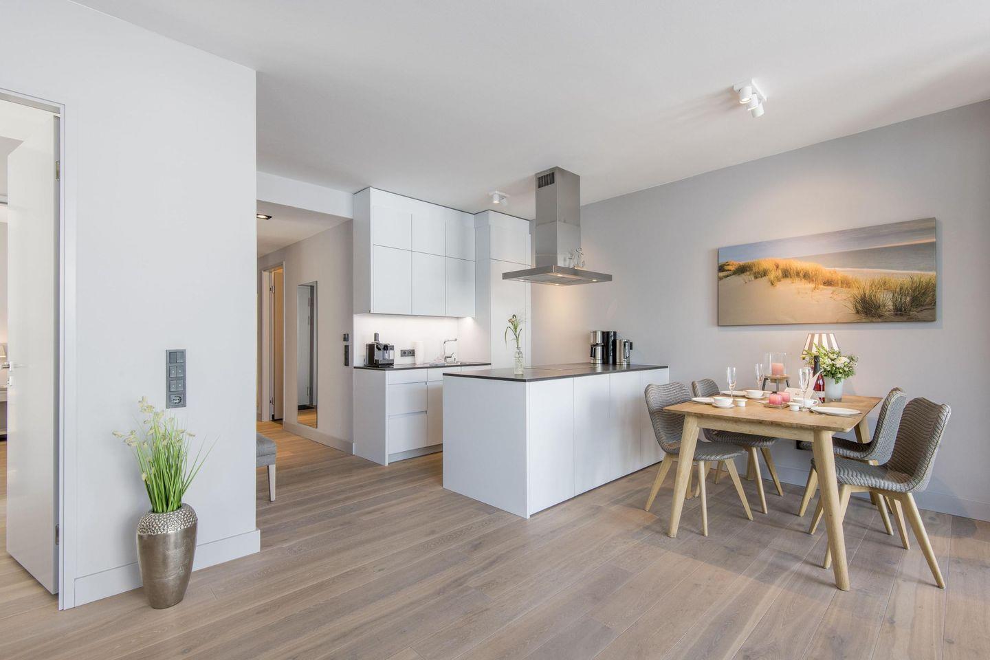 Stilvolle 3-Zimmer-Ferienwohnung mit Loggia, moderner Küche und Tiefgaragenstellplatz in Westerland, nur 400 m vom Strand entfernt.