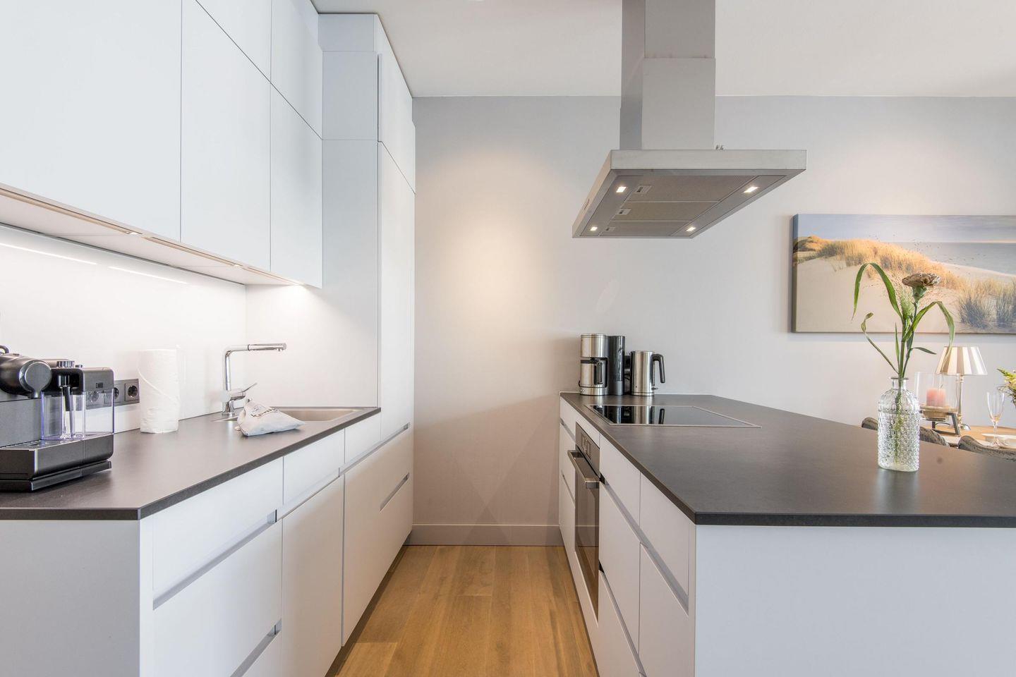 Die offene Küche ist ein absolutes Highlight: ausgestattet mit einer Kochinsel, einem Induktionsherd, Geschirrspüler, Nespresso-Maschine und Filterkaffeemaschine. Hier finden Sie alles, was Sie für kulinarische Genussmomente benötigen.