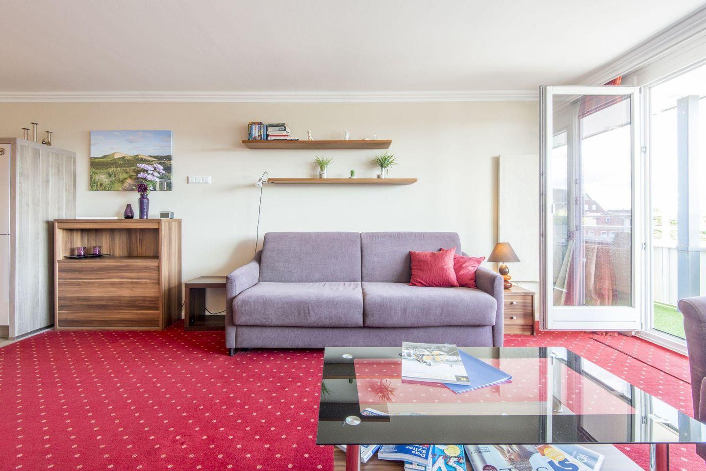 1-Zimmer-Ferienwohnung auf einer Ebene (2. OG) in Westerland mit ca. 42 qm für bis zu 2 Personen.