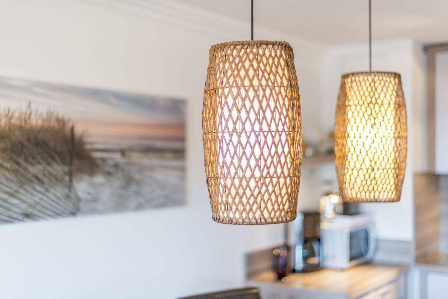 Die offene Einbauküche ist modern und vollständig ausgestattet und lädt zum Zubereiten kleinerer Mahlzeiten ein. Zur Unterhaltung steht ein 43 Zoll Samsung LED-TV (Ultra HD, HDR10+, Smart TV) bereit, der Zugang zu Netflix, Amazon Prime Video, Apple TV+ und weiteren Streaming-Diensten über den eigenen Account ermöglicht. Ein Blu-ray-/DVD-Player bieten zusätzlichen Komfort.